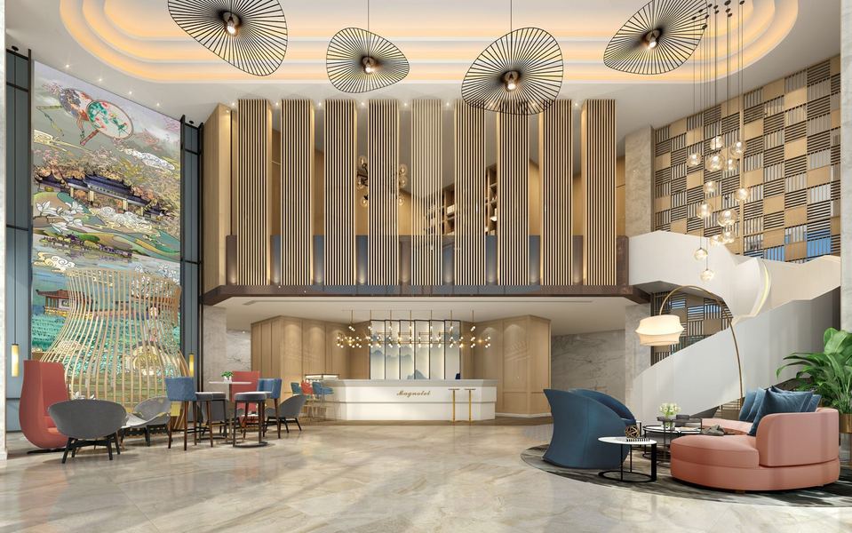 【现场实拍】白玉兰酒店城市绘实拍插画壁画