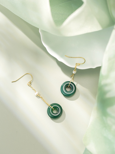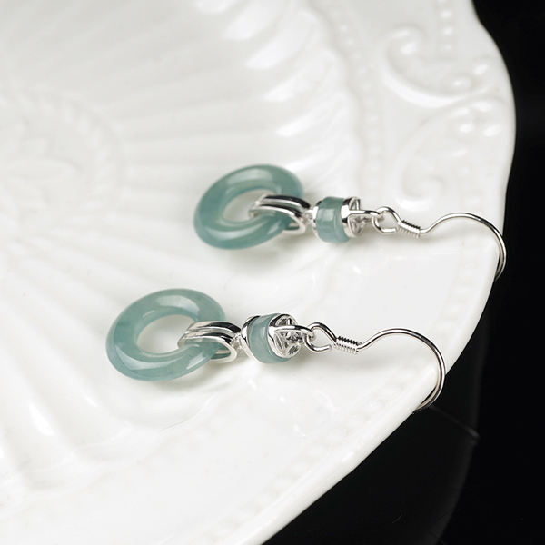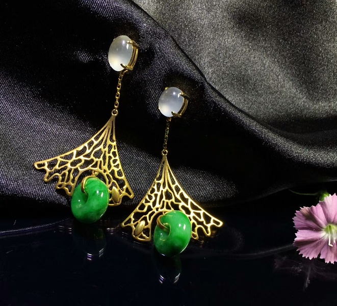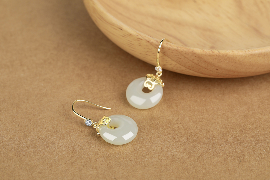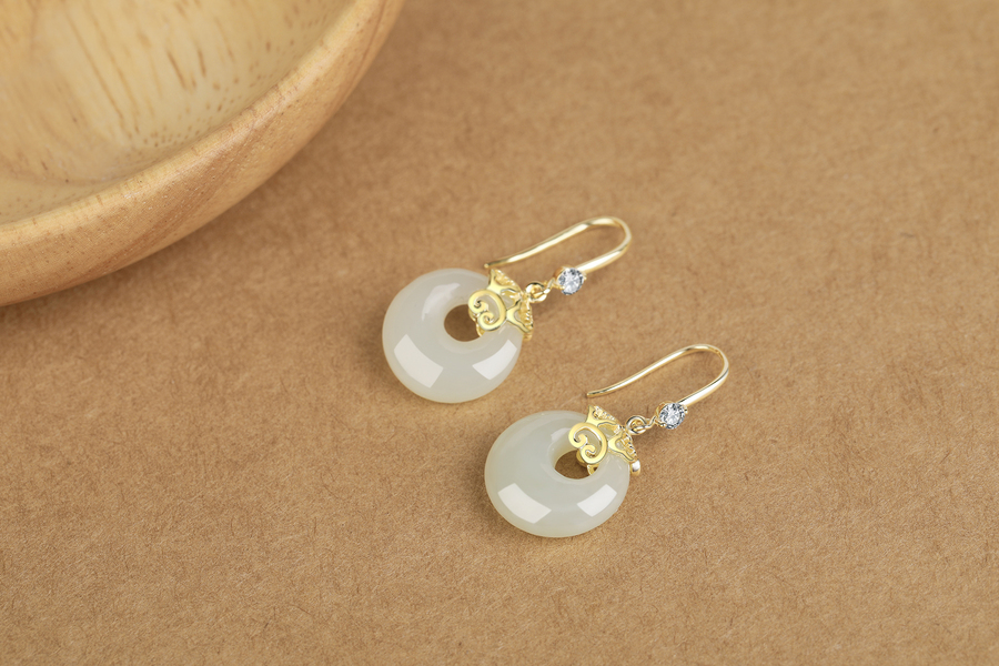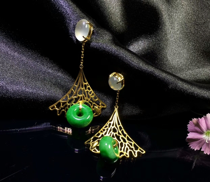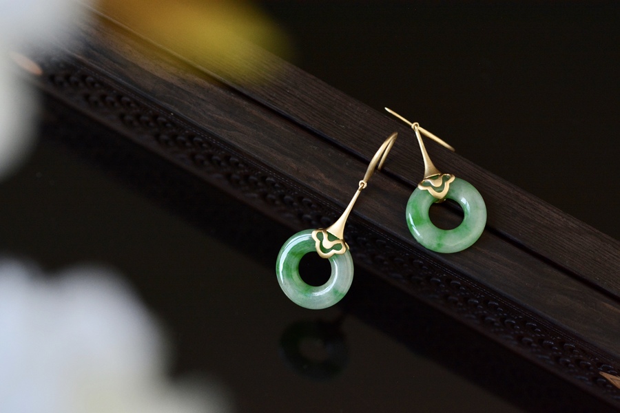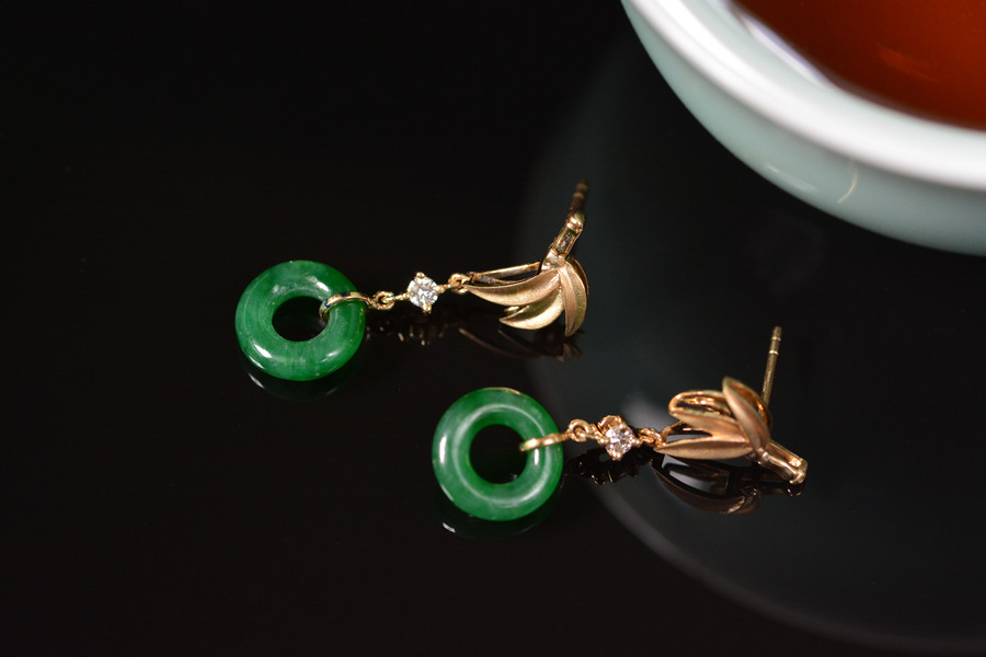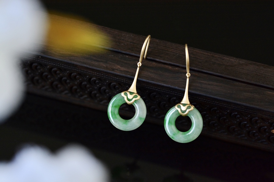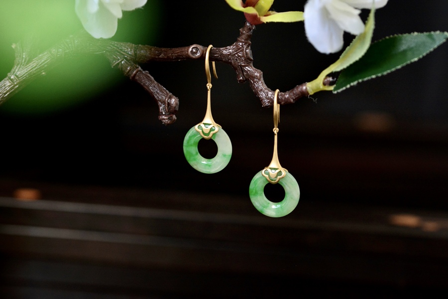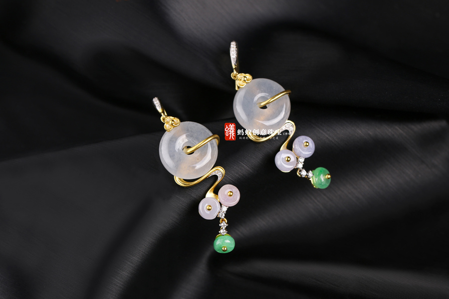 【蚂蚁原创设计】18K金镶嵌冰糯种翡翠平安扣耳坠