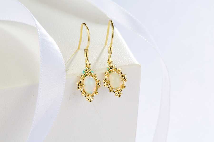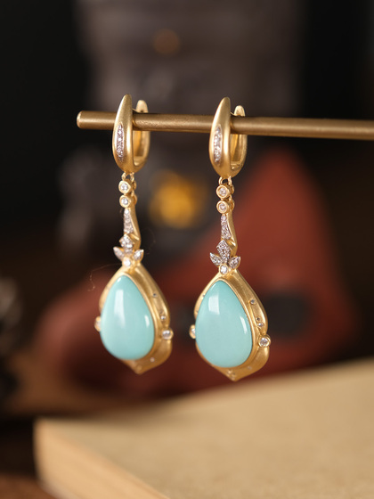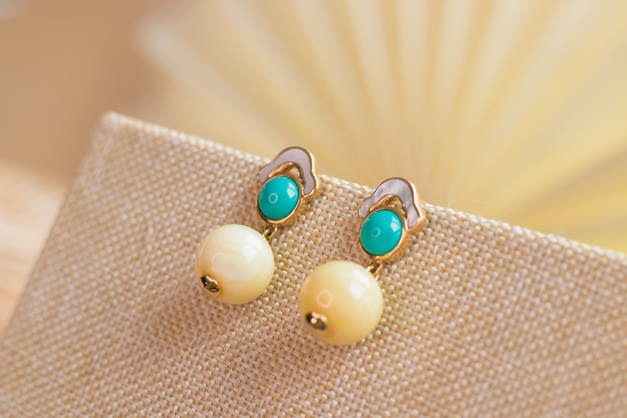 爱盘玩原创-松石贝母蜜蜡耳钉