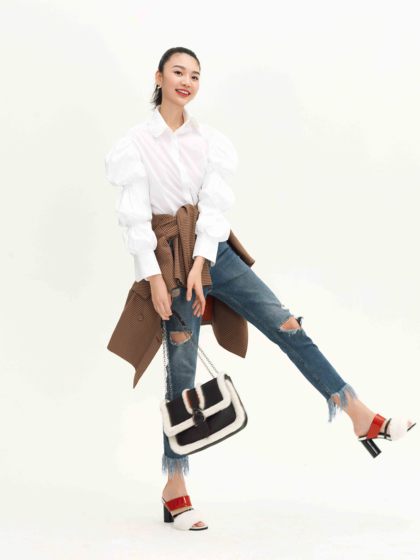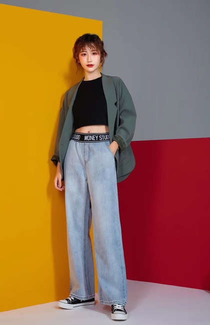 模特丝丝ins超火牛仔裤 阔腿裤 直筒裤 休闲裤外景拍摄