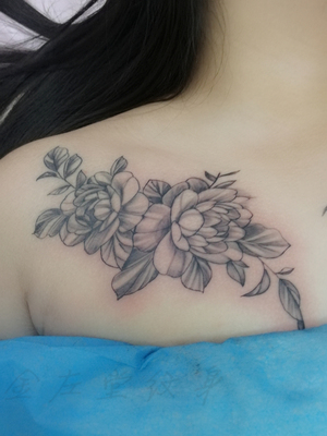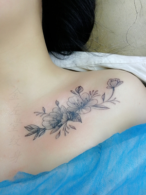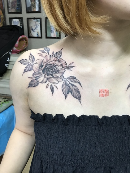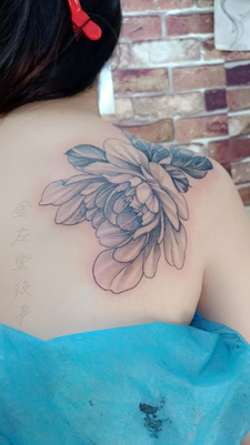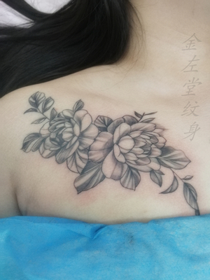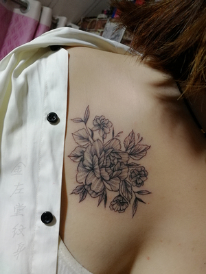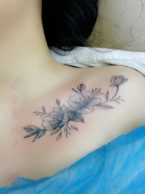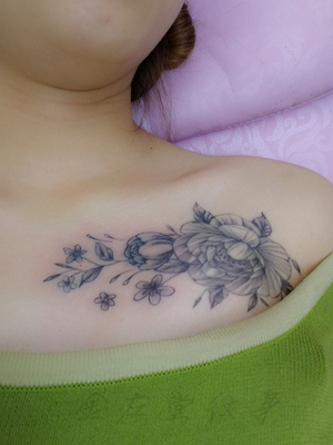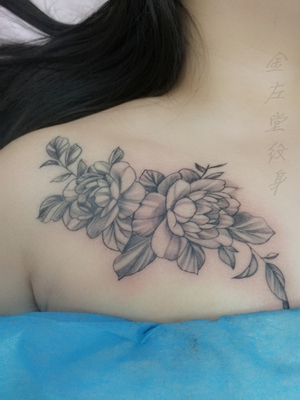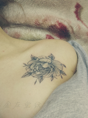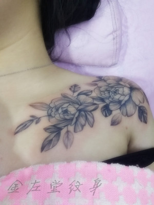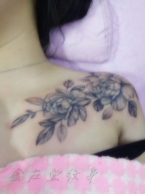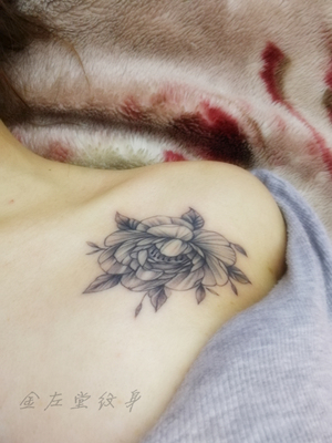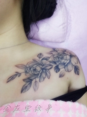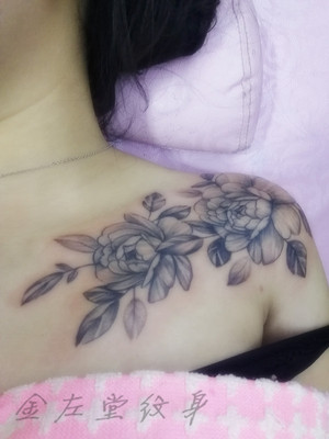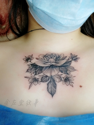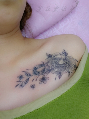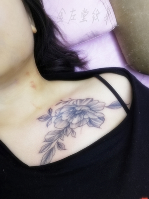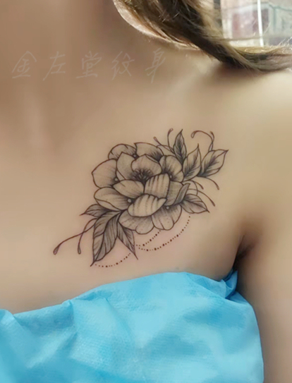 锁骨素花纹身河南安阳金左堂纹身tattoo牡丹