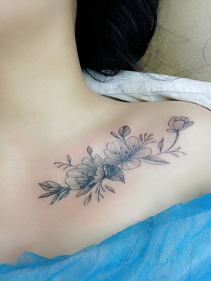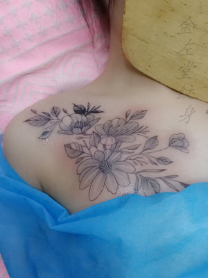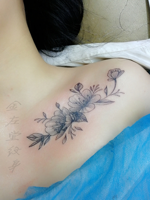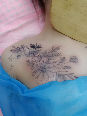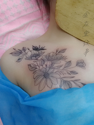锁骨素花纹身金左堂纹身河南安阳tattoo遮盖疤痕