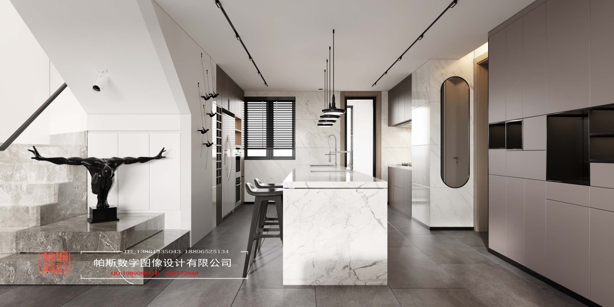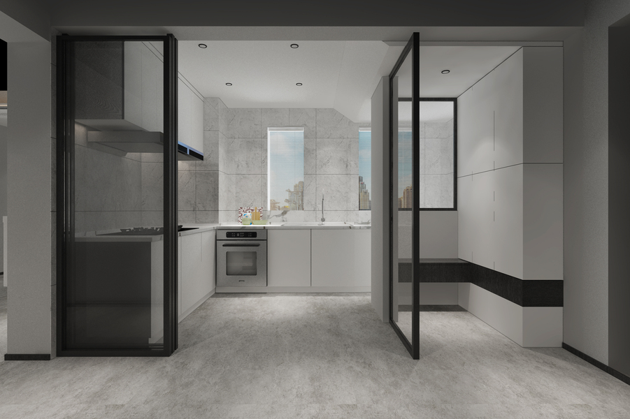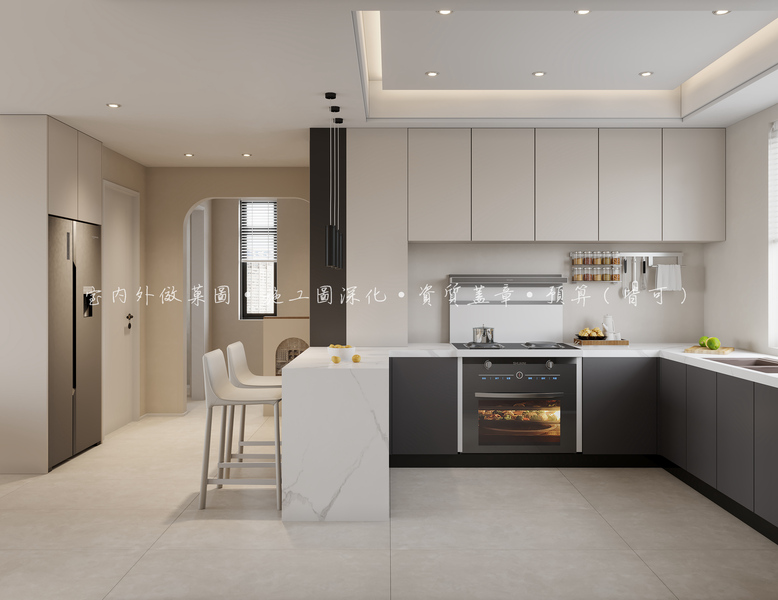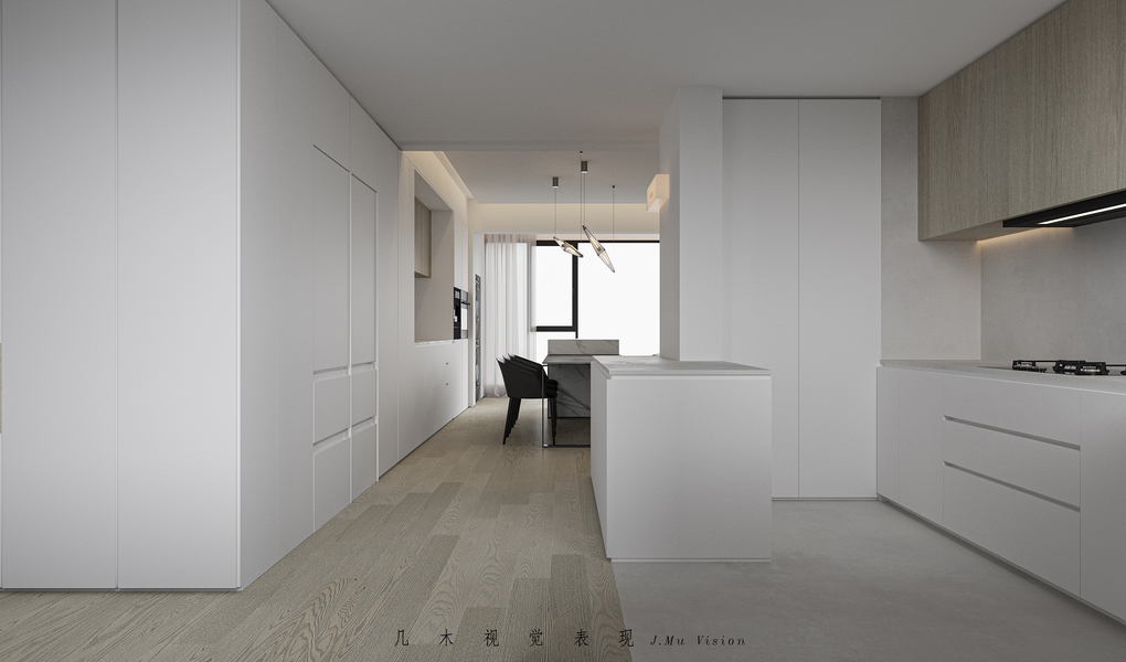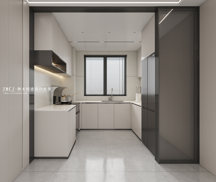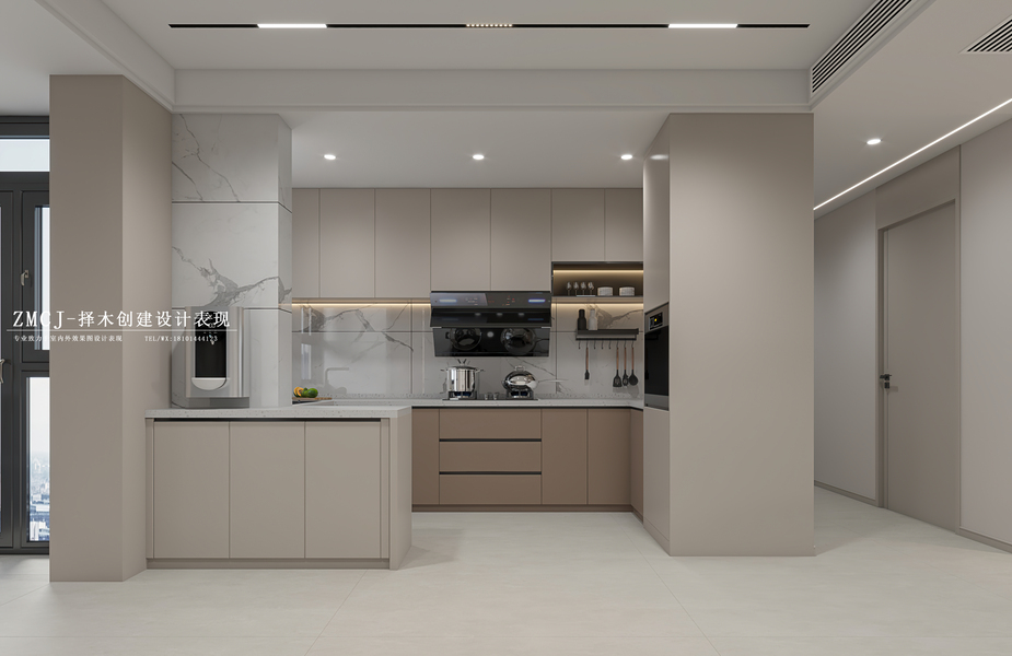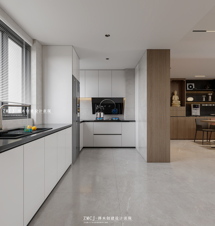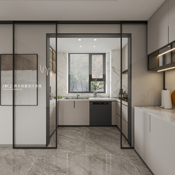 现代轻奢客餐厅厨房—择木创建新晨效果图