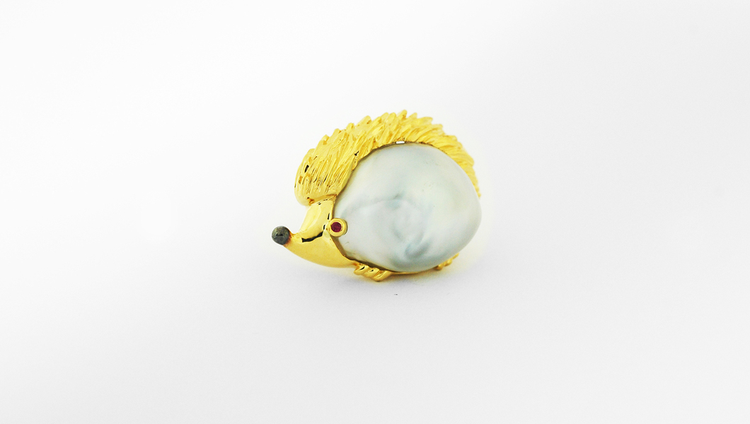 代波军艺术珠宝定制----异型珍珠镶嵌设计“小刺猬”作品欣赏