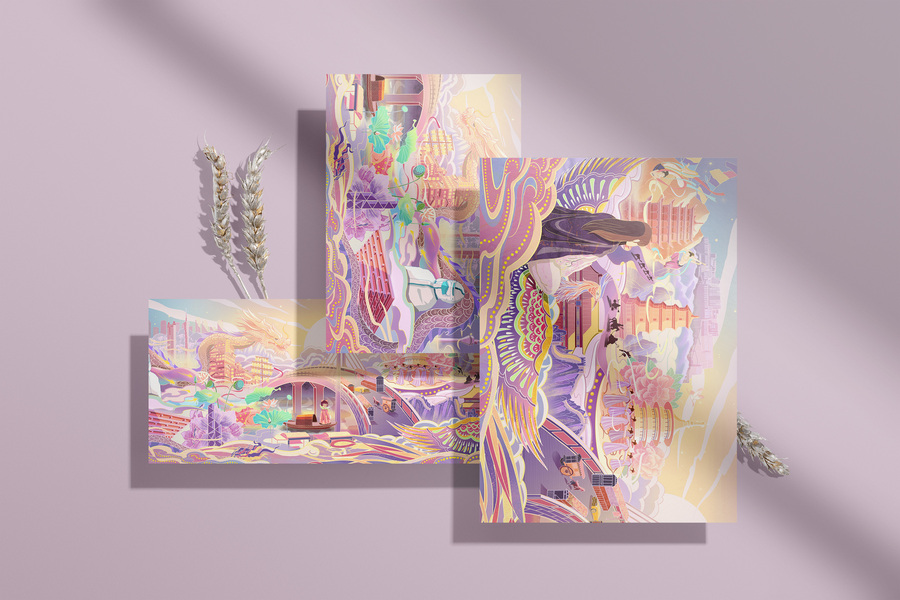 湖北印象文创设计 and 博鳌亚洲论坛方巾图案设计