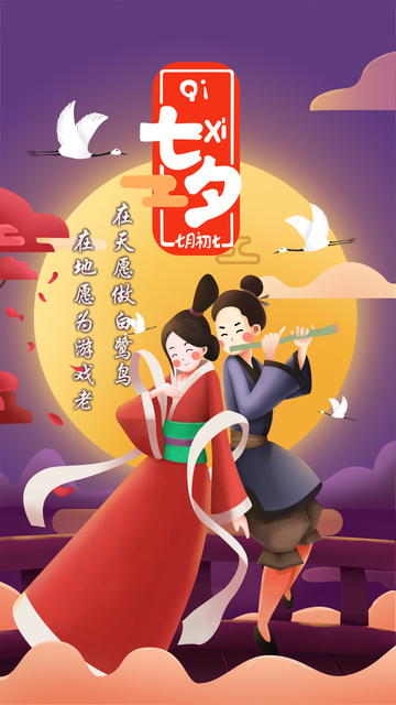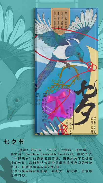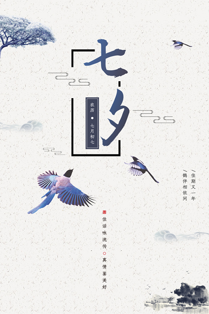 中国古风七夕节历史文化介绍主题课件PPT模板