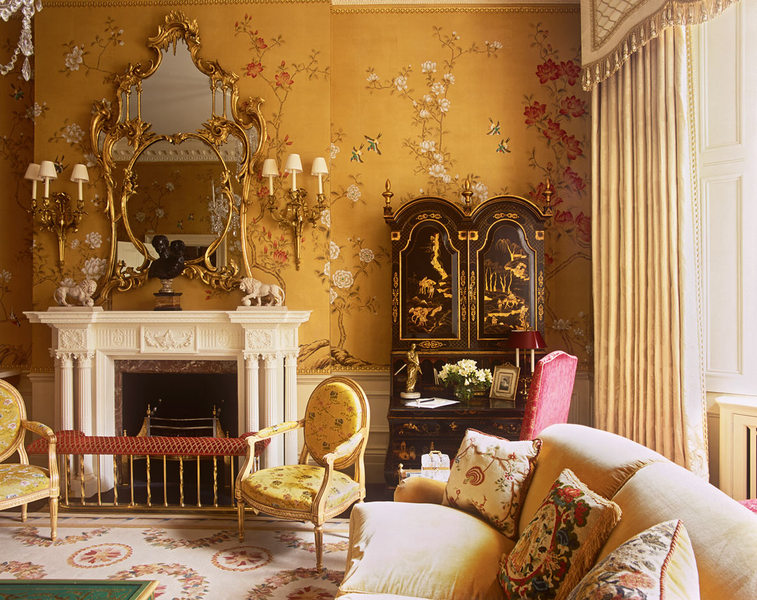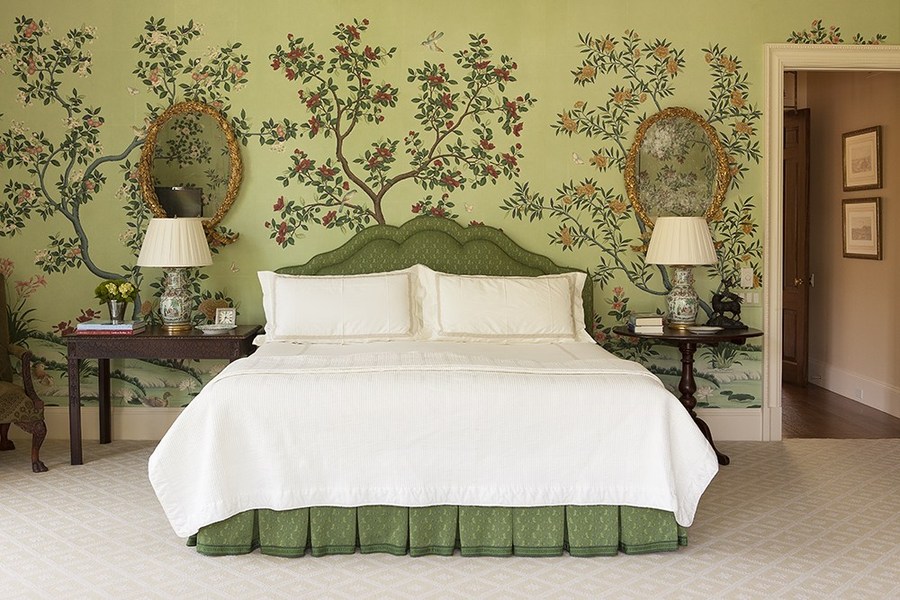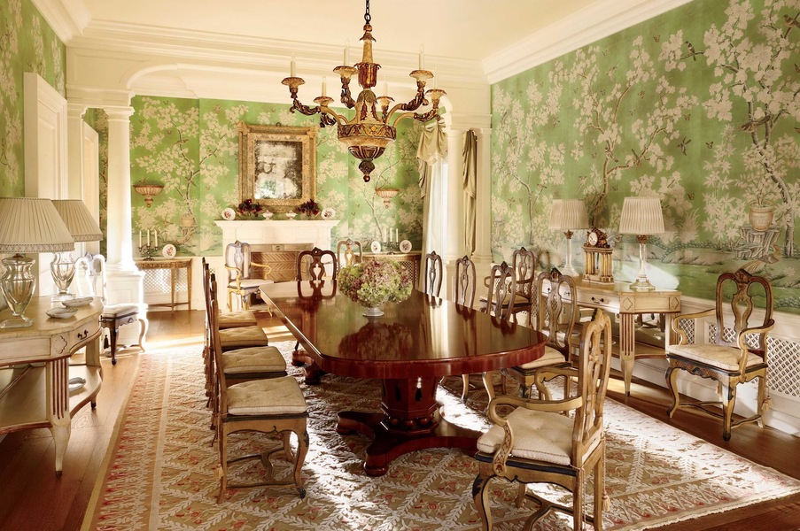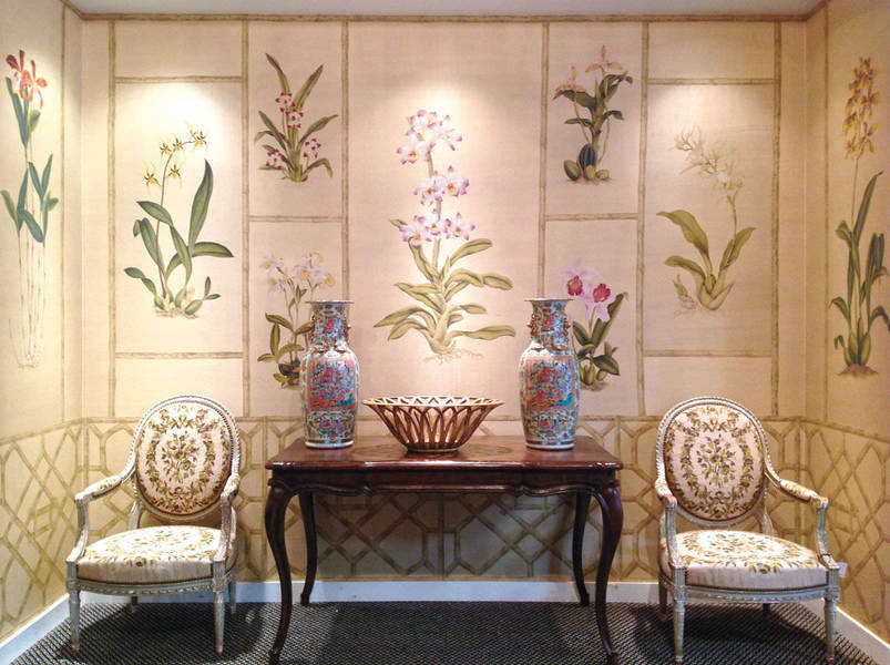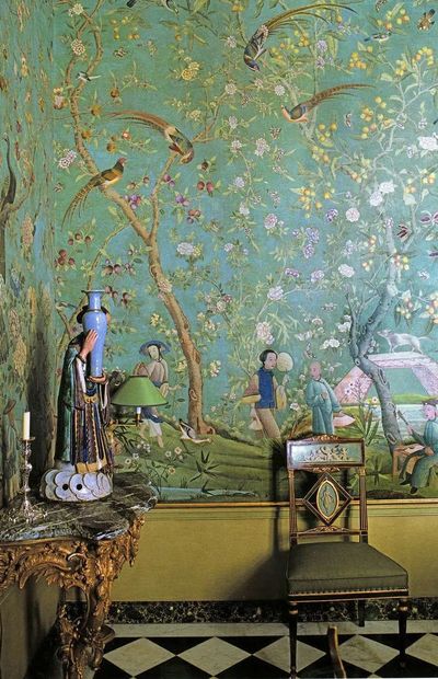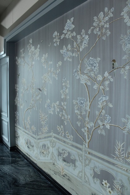 纯手工绘制的大型背景墙壁画王室真丝手绘墙纸图片