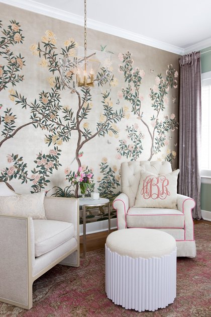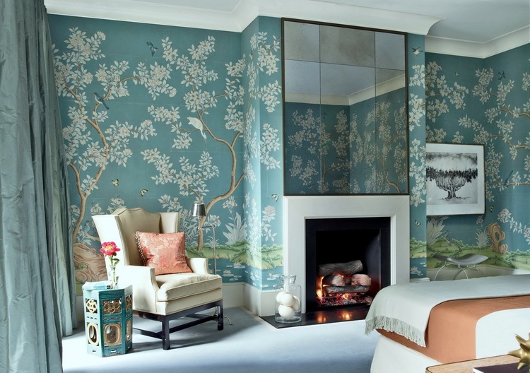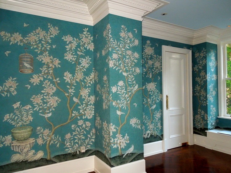 真丝手绘墙纸工笔花鸟画壁纸图片