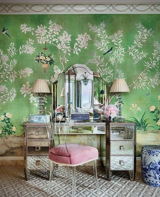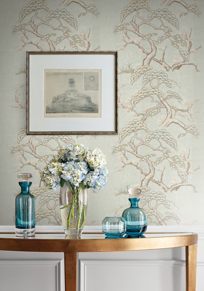 真丝手绘墙纸工笔花鸟画壁纸图片