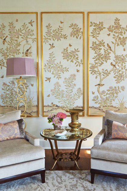 银箔手绘墙纸画纯手工绘制的高端壁画