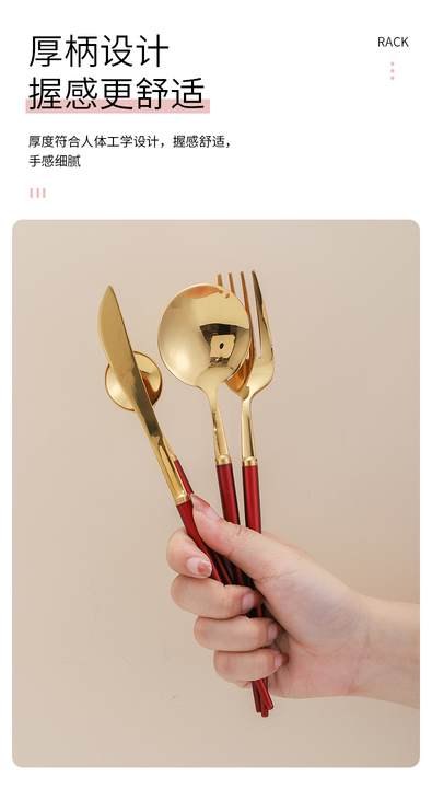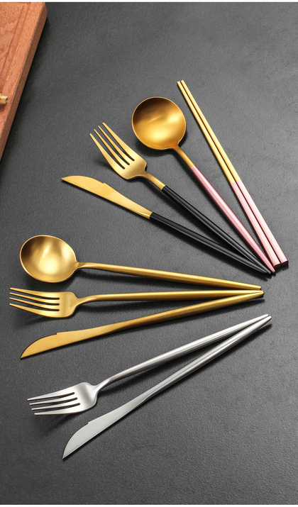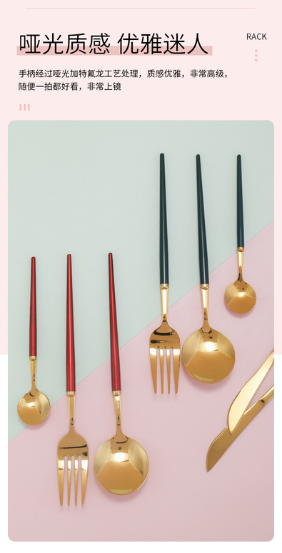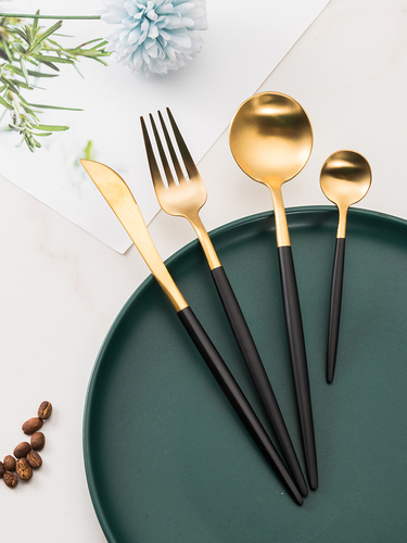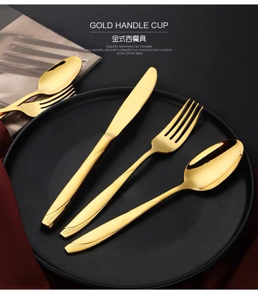 家用304不锈钢金色刀叉套装西餐餐具套装 餐具摄影