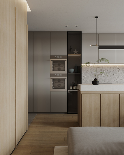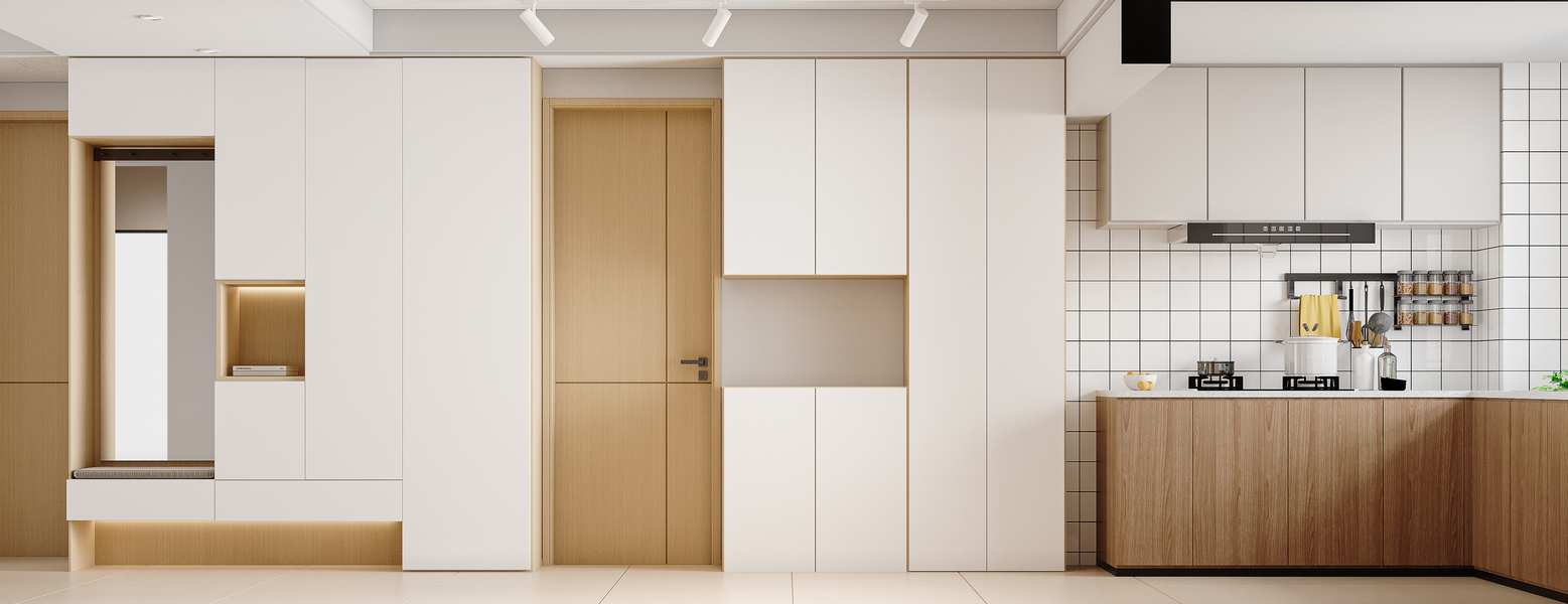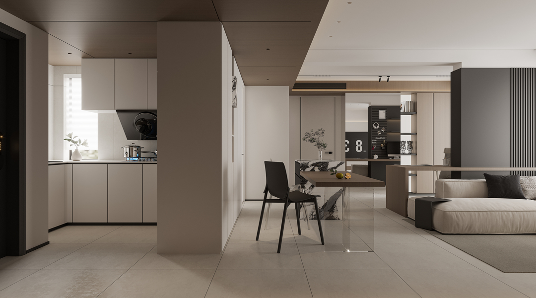 整体以奶咖色、米色、白色为主,呈现出的空间通透干净