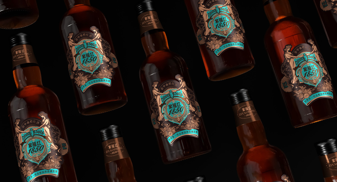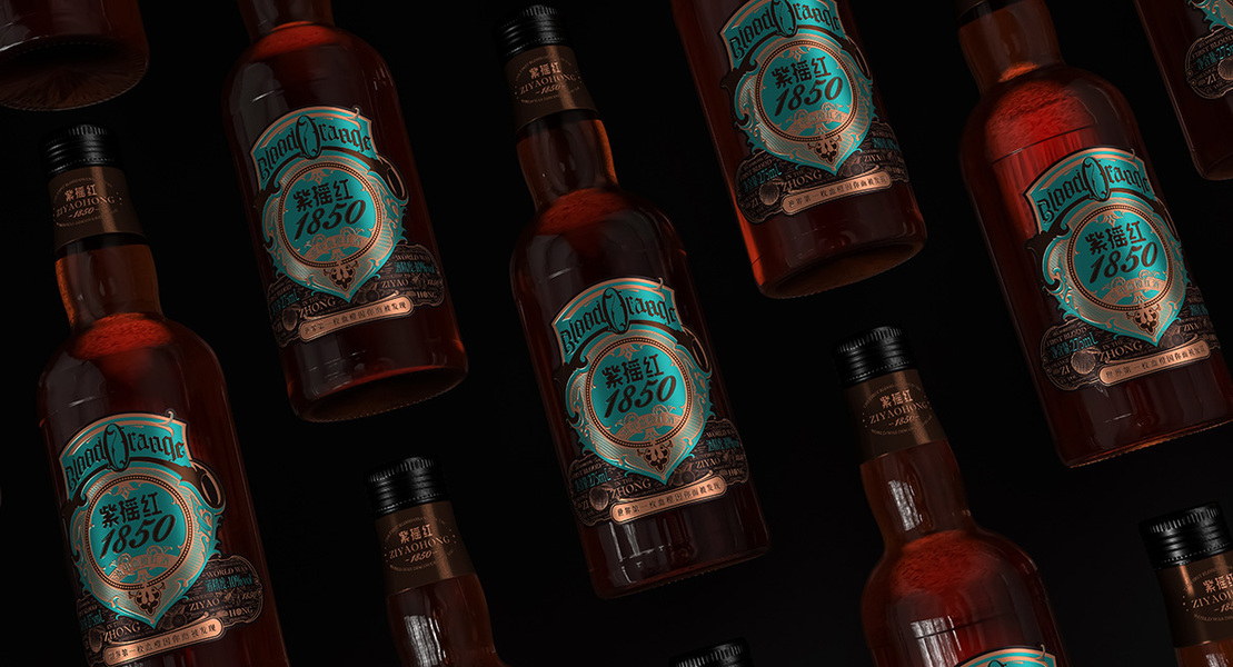 资中血橙红酒·紫摇红1850|VI/插画/瓶标/红酒包装设计