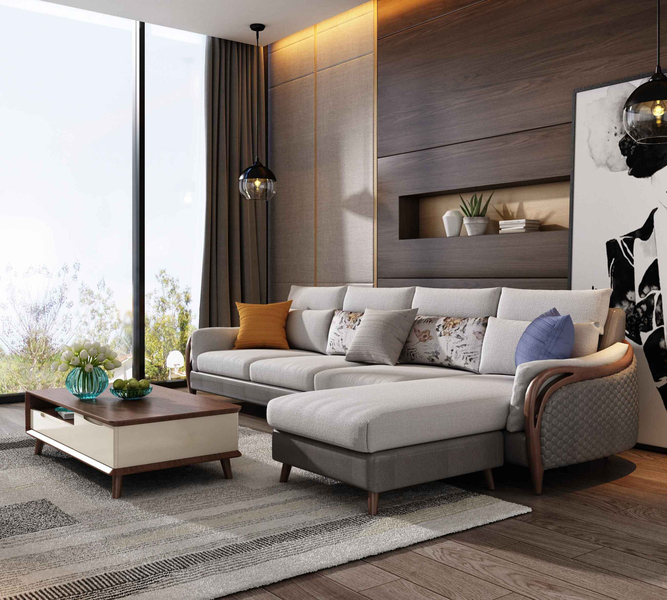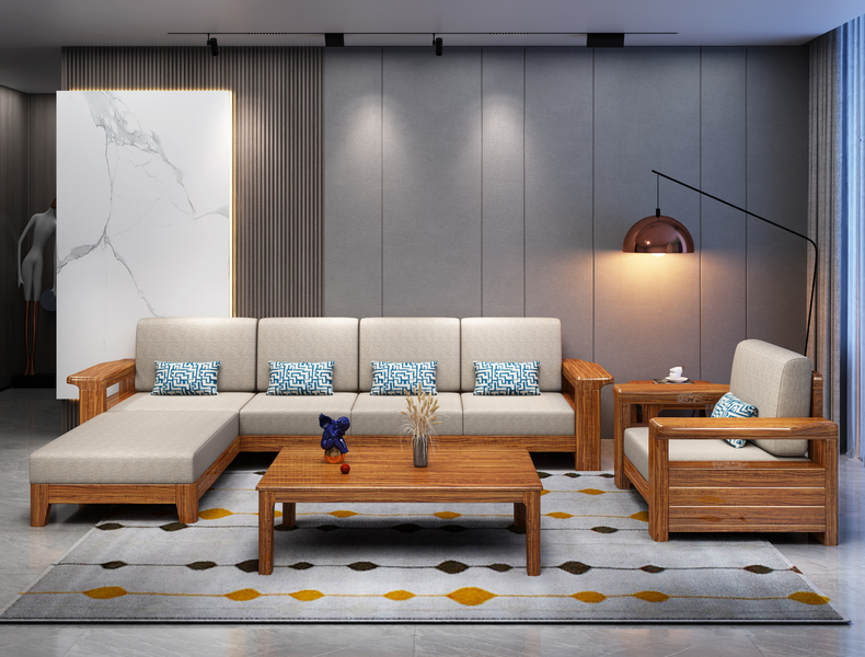 某电商家具产品渲染 - 实木沙发款(原木+梨花木)