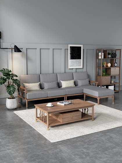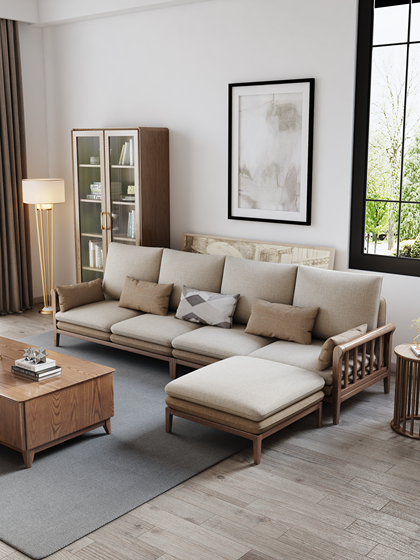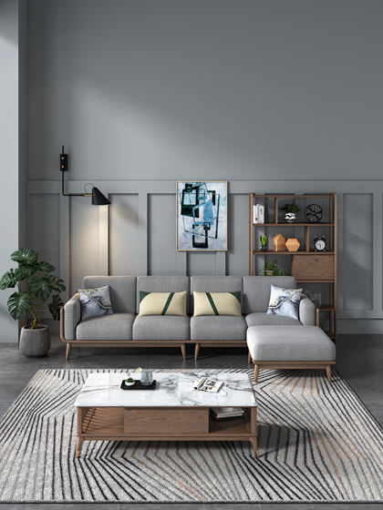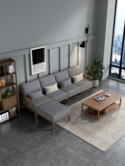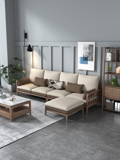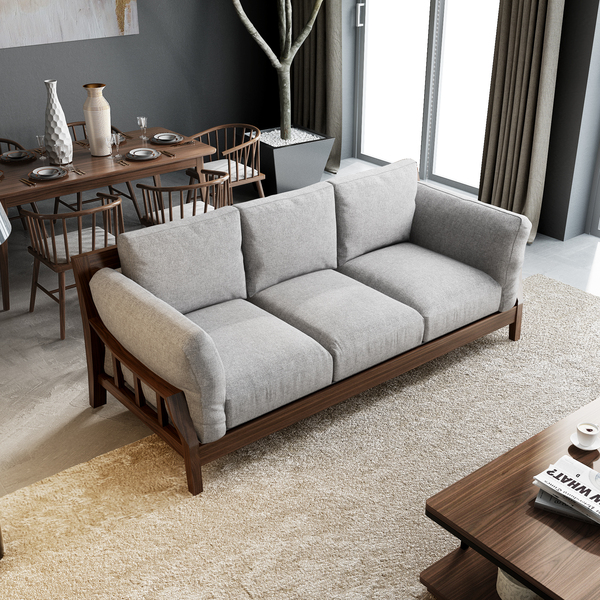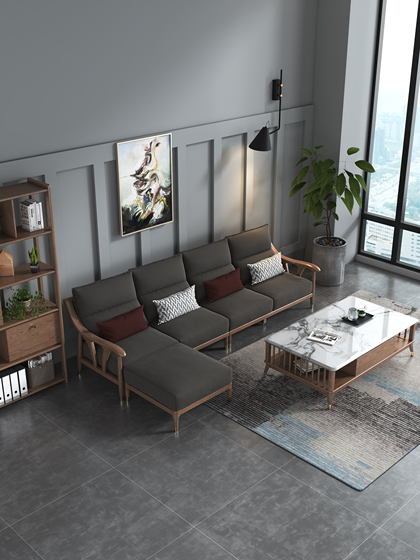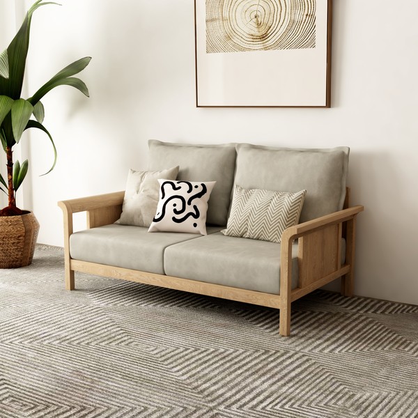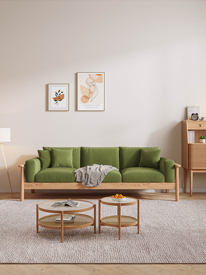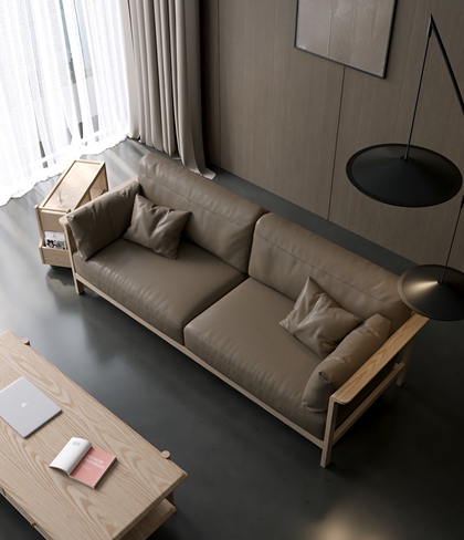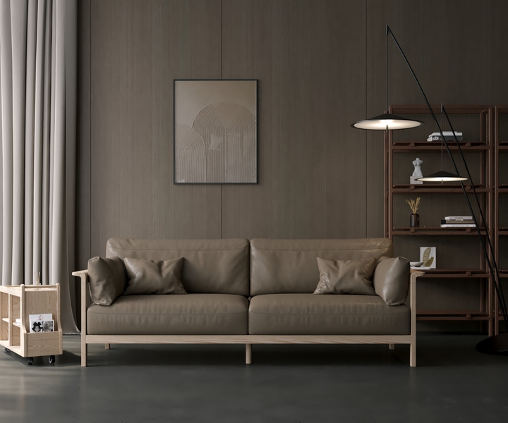 某电商家具产品渲染 - 实木沙发款(原木+梨花木)