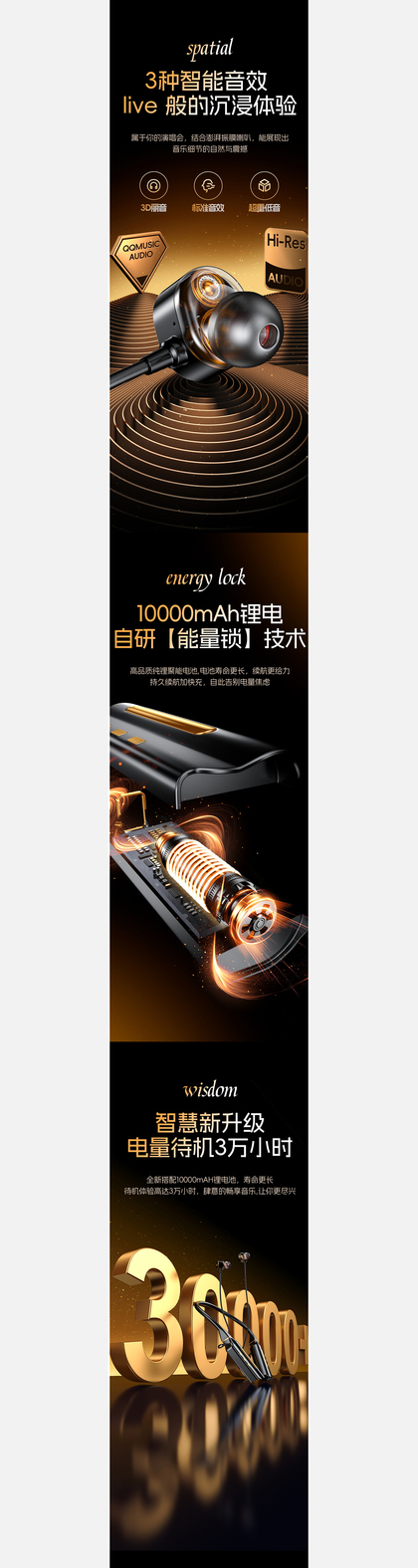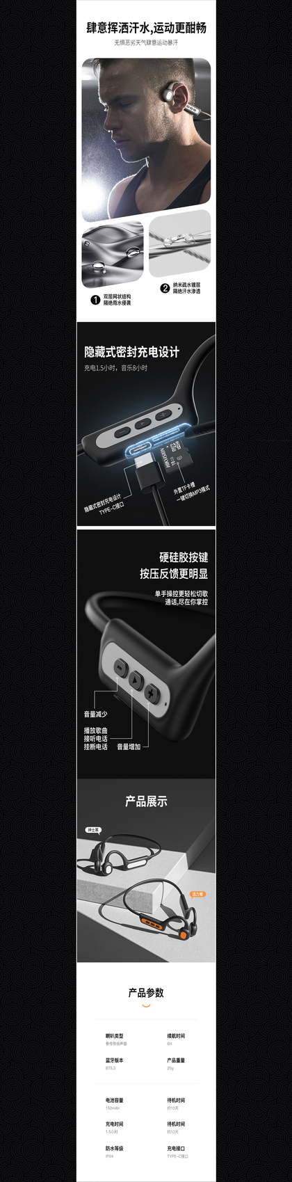 挂脖耳机 音乐耳机 详情页设计 产品建模渲染图