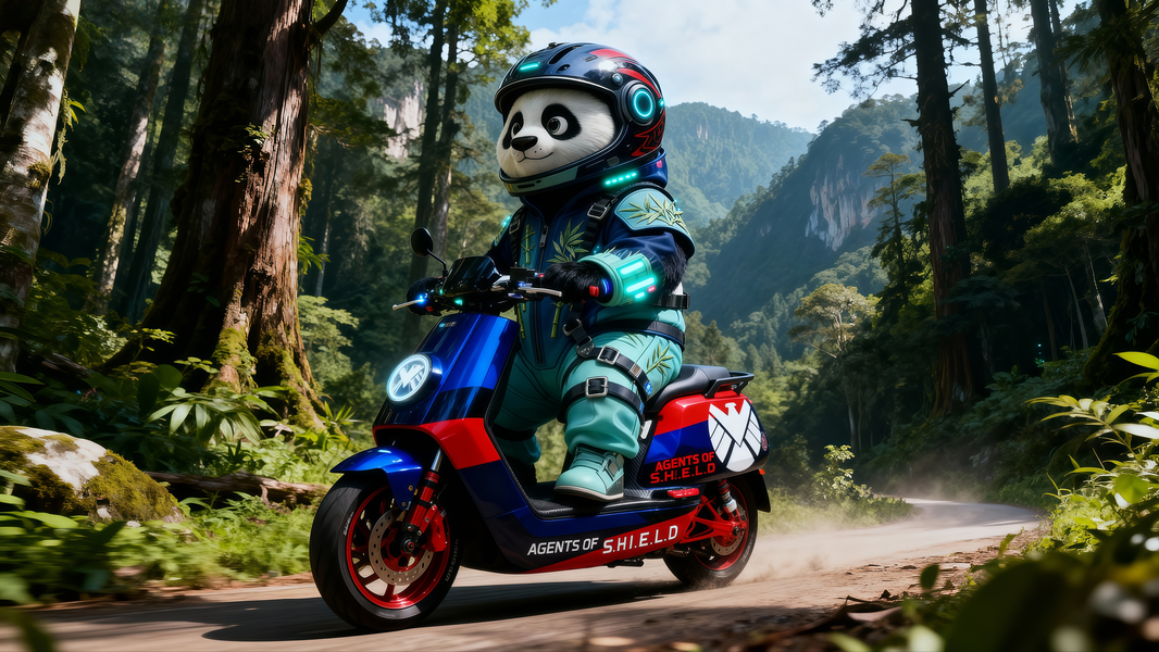 熊猫阿达出击!骑上小牛电动车神盾局专属座驾穿越森林