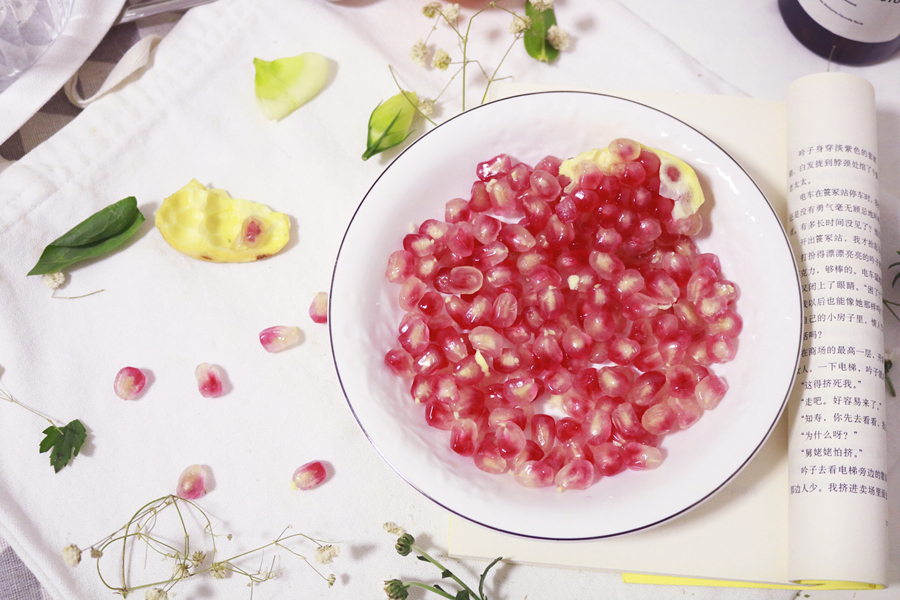 秋浓榴鲜若脂粉 露侯酒赤薄觞杯