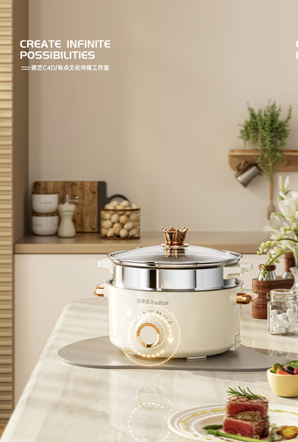 电煮锅丨厨具丨3D丨C4D产品渲染 ✖ 有点文化