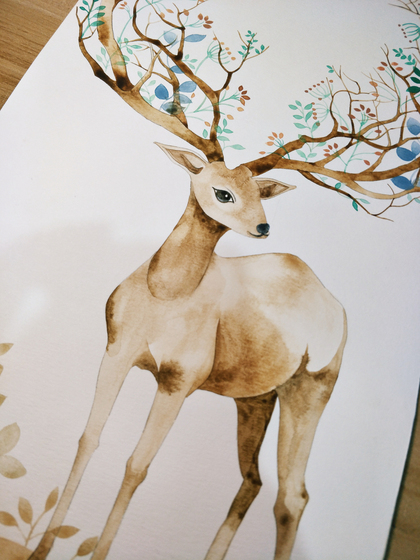 水彩小鹿 装饰画