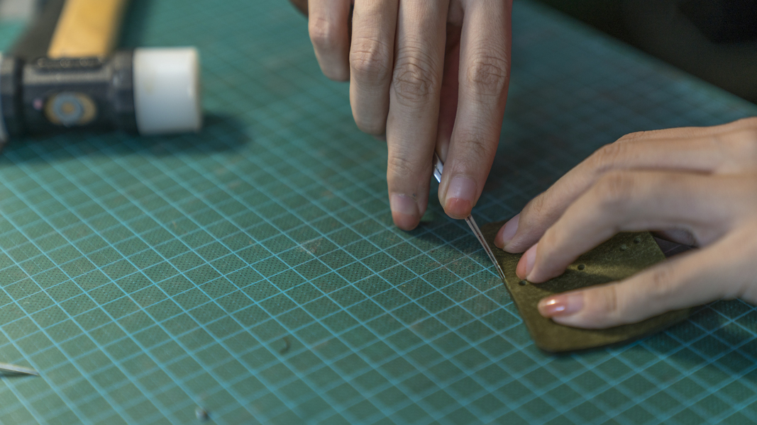 皮具教程-手工染色起鼓手拿包