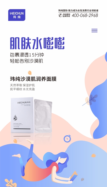 美容行业/面膜微信海报/线上海报图/玻尿酸面膜