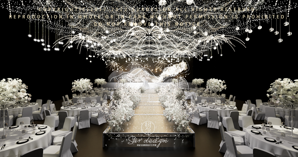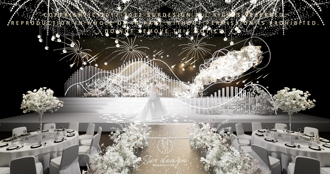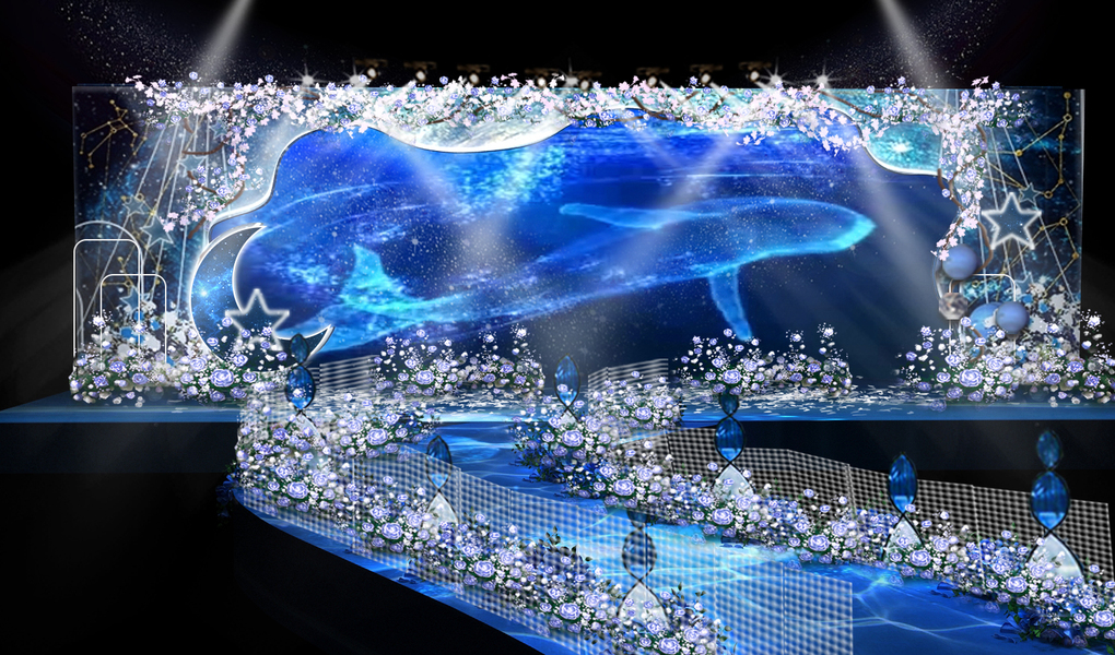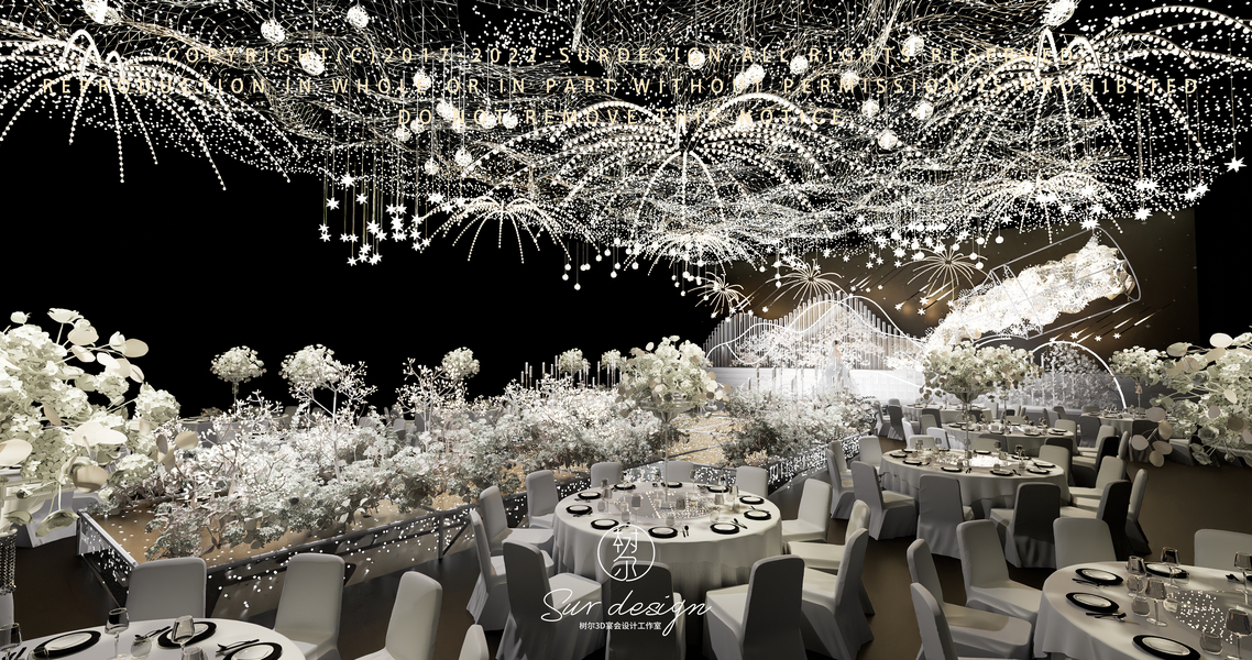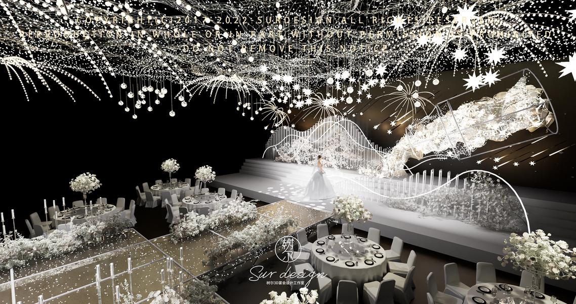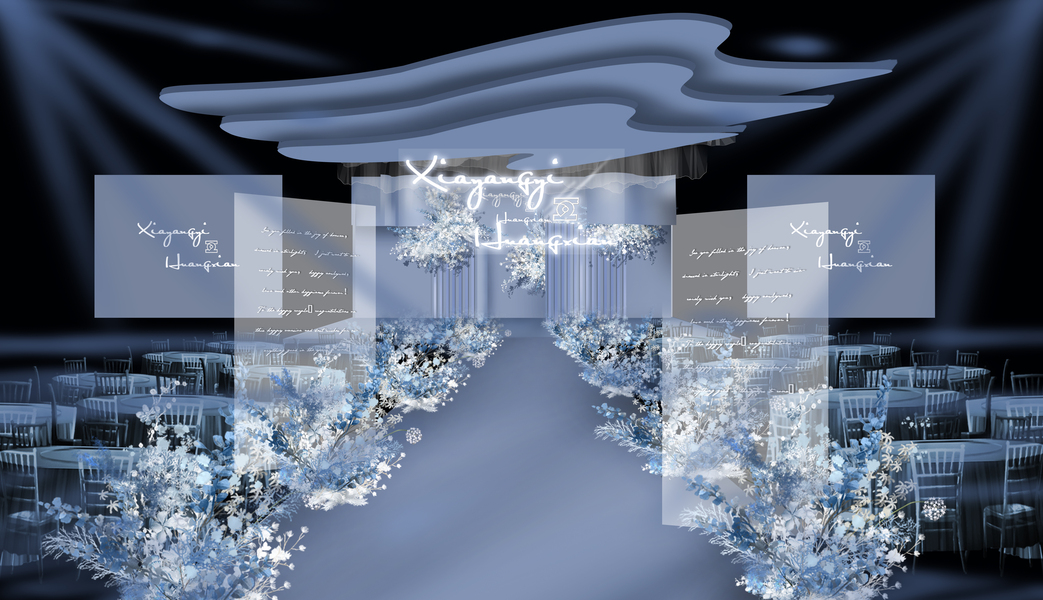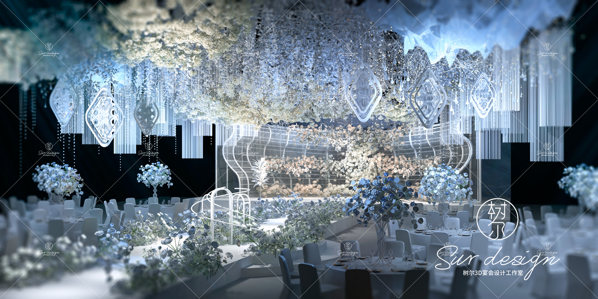 SurDesign树尔设计工作室蓝色系婚礼宴会3D效果图