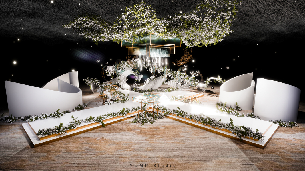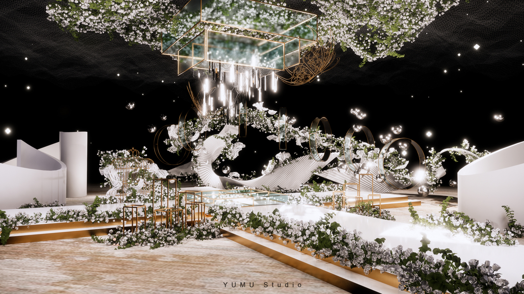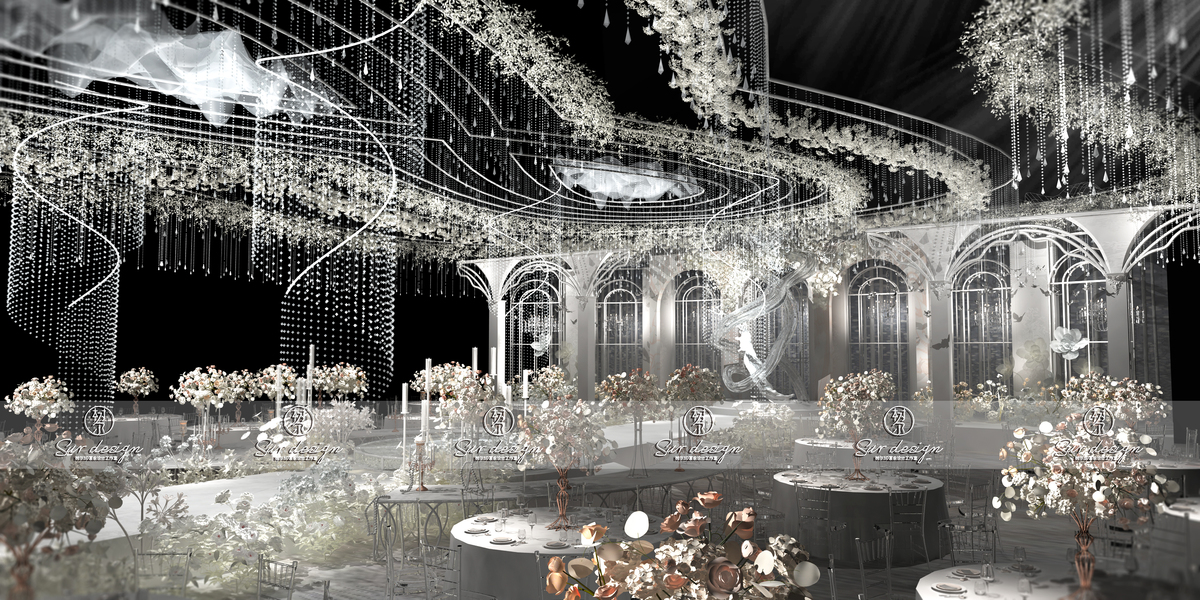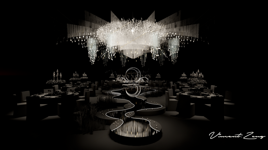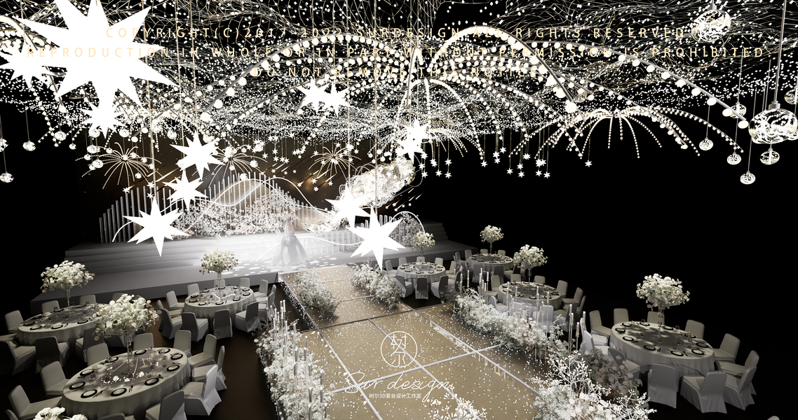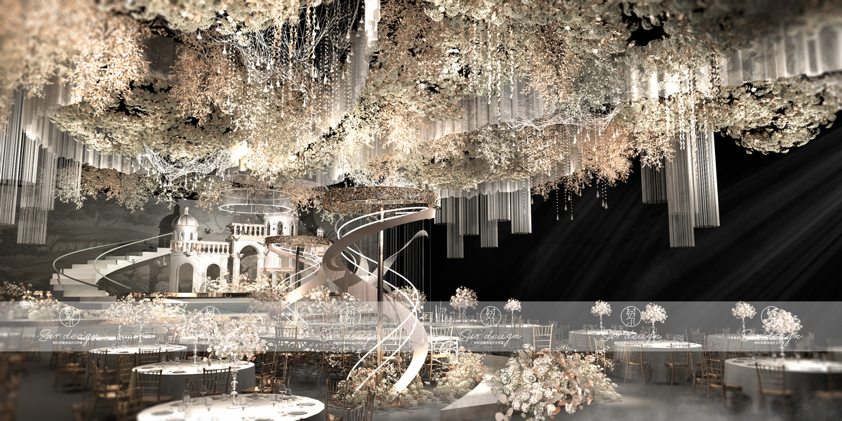 SurDesign树尔设计工作室蓝色系婚礼宴会3D效果图