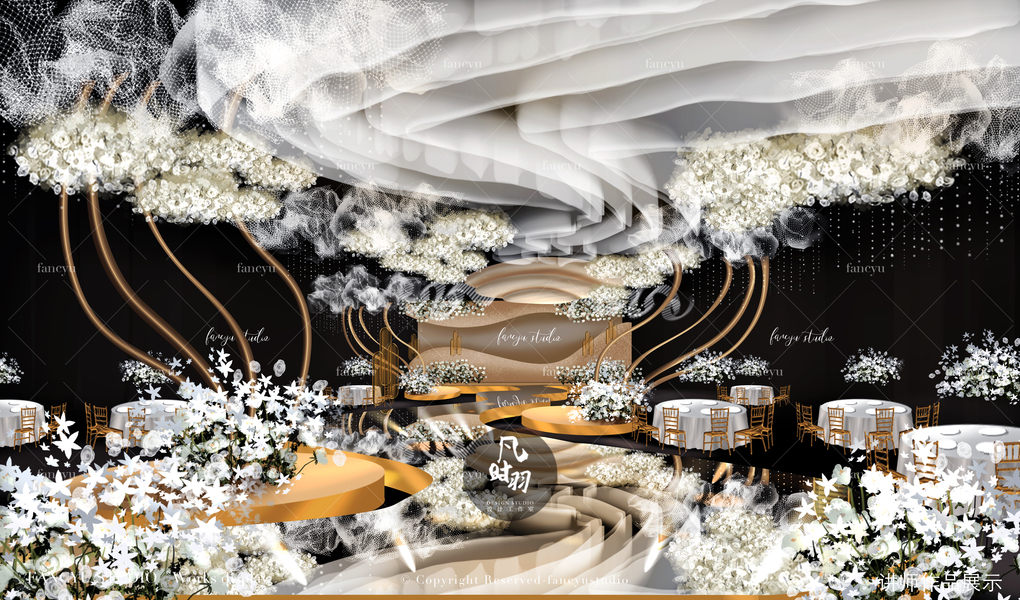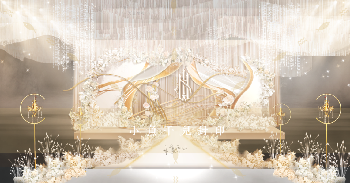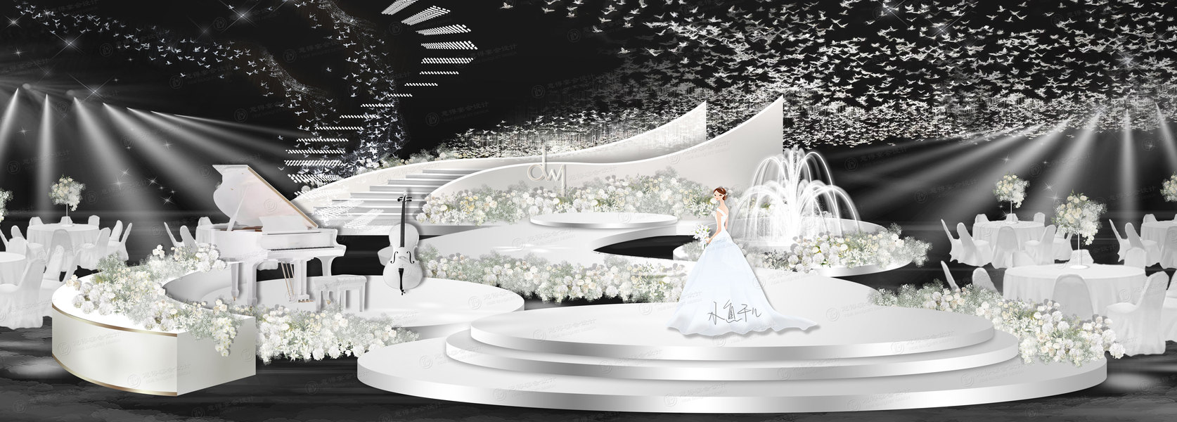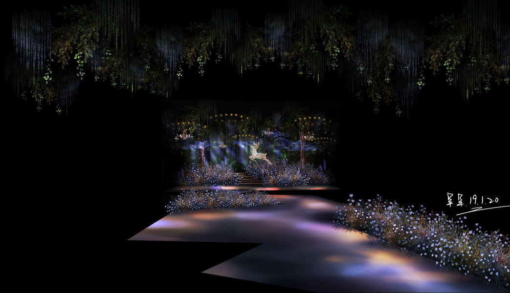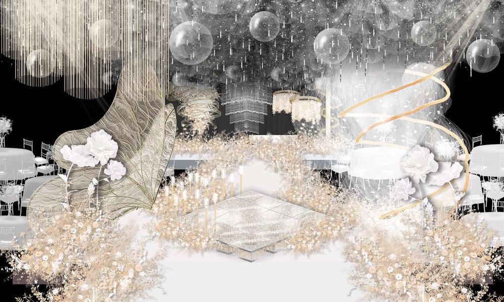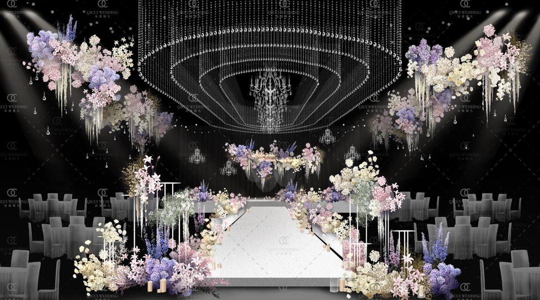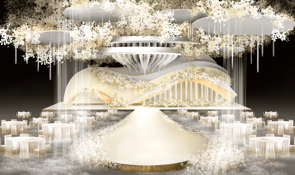 SurDesign树尔设计工作室蓝色系婚礼宴会3D效果图