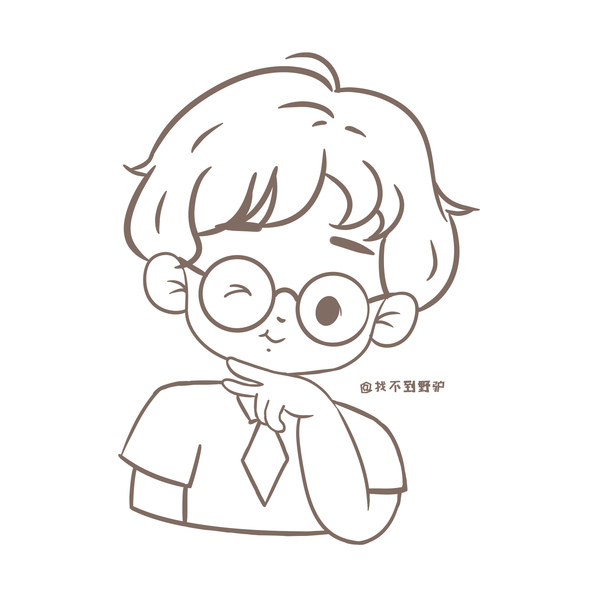 花栀子插画:男生简笔画头像黑白头像