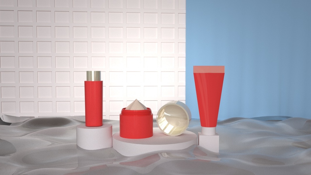 粉底液、护肤霜建模渲染