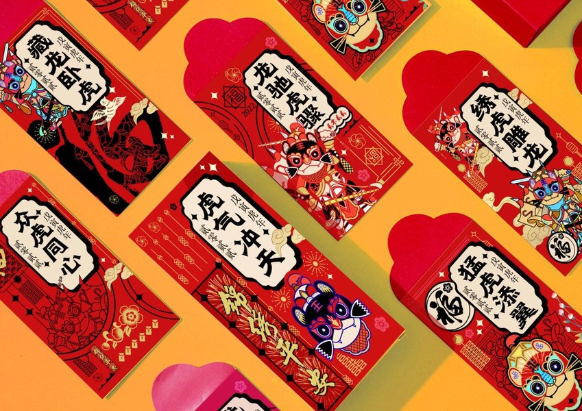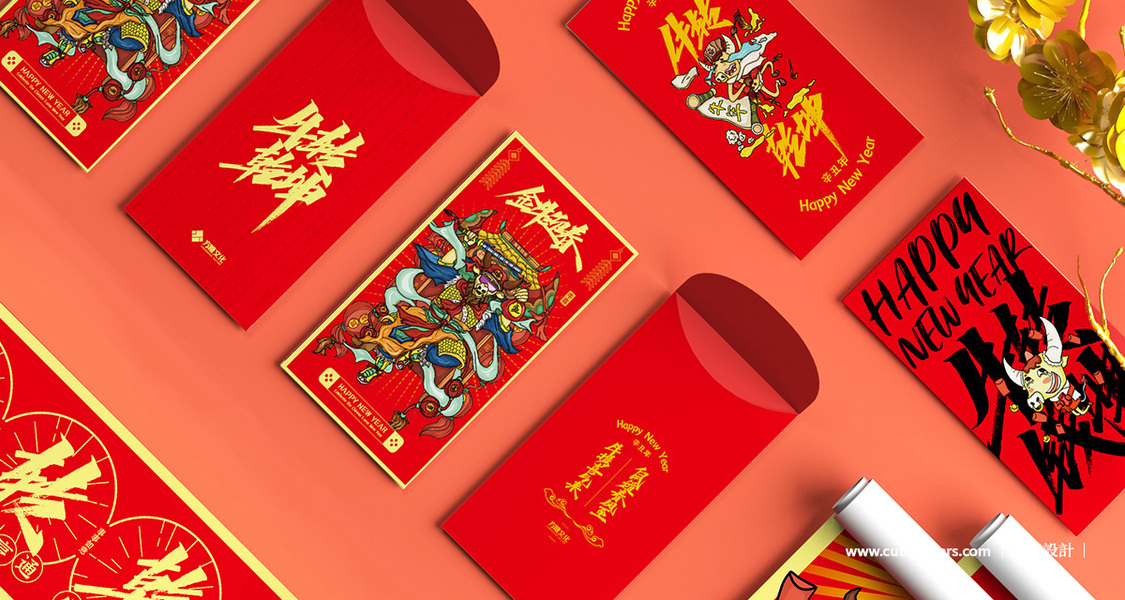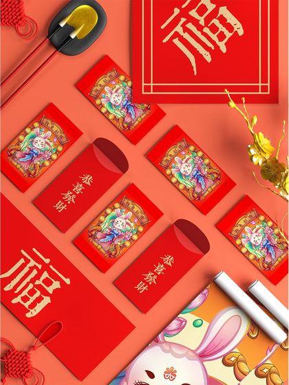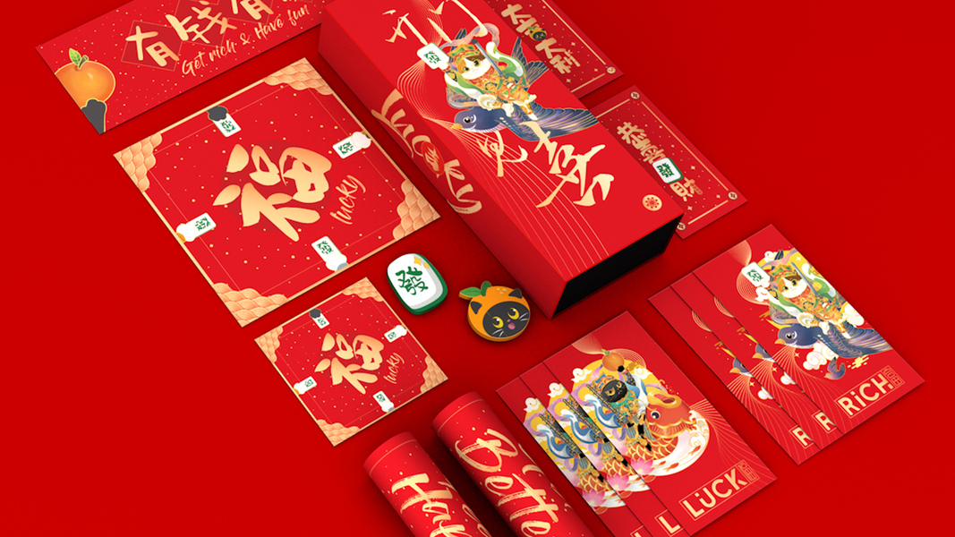 开门见喜猫门神主题春节对联红包礼盒 麻将 大桔大利