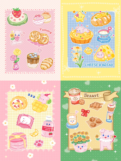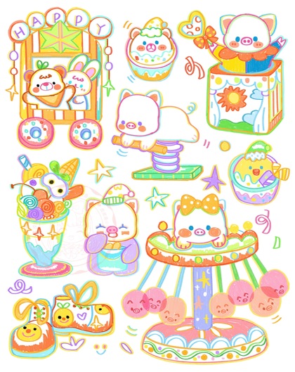 【文创插画】甜品鲜花猪猪系列简笔画🍰🐷