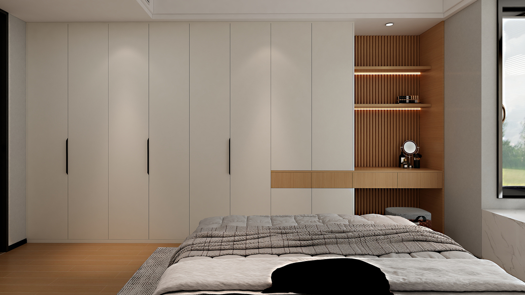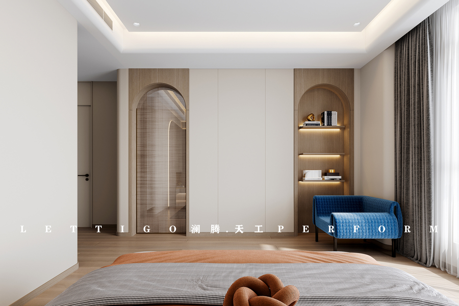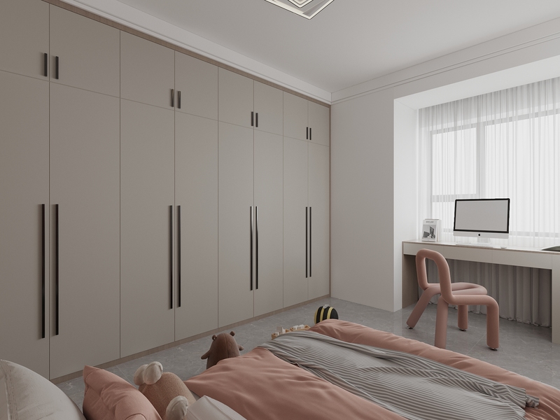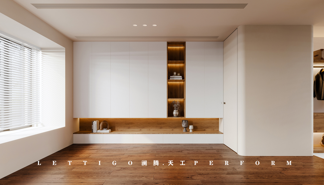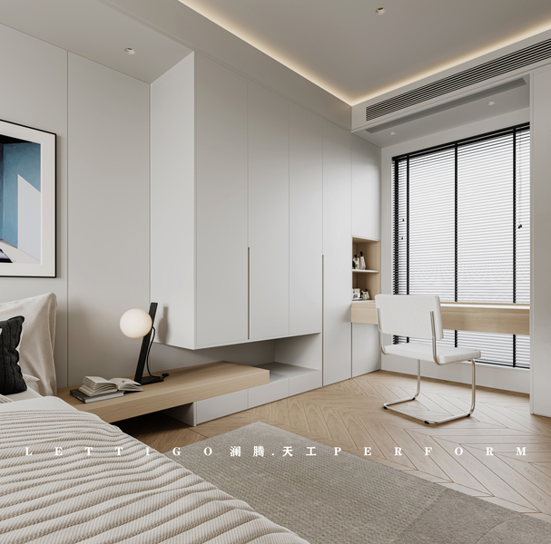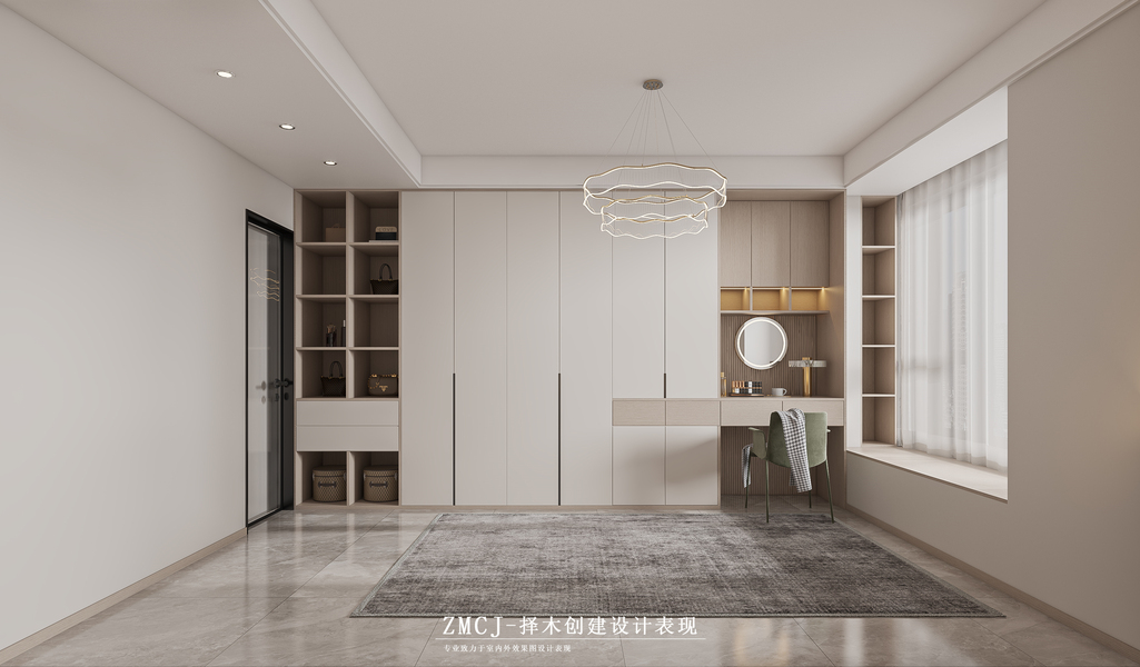 现代风格客餐厅厨房卧室—择木创建新晨效果图
