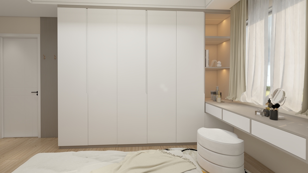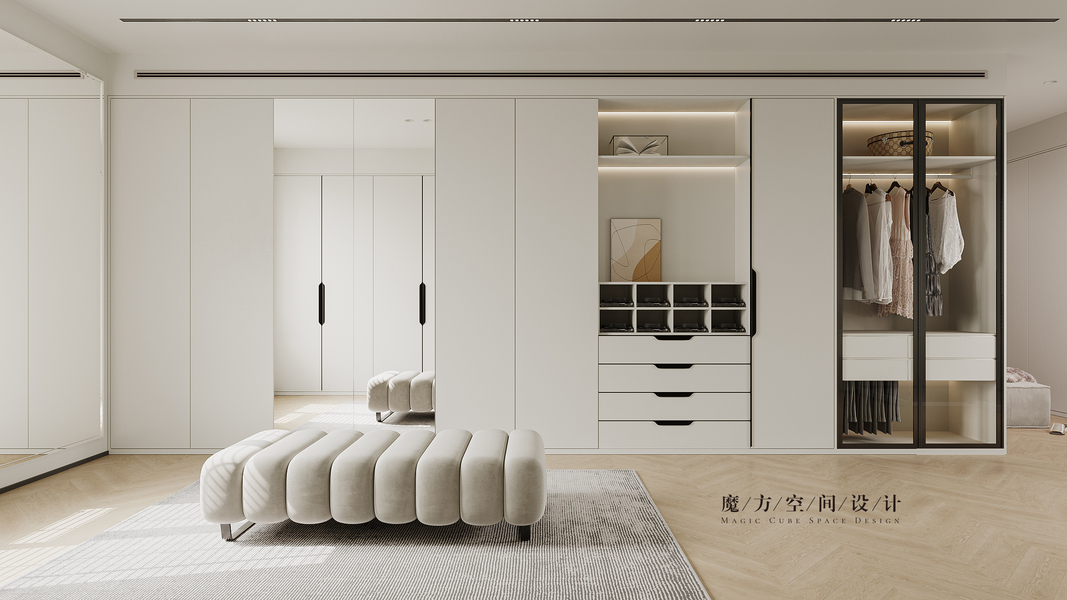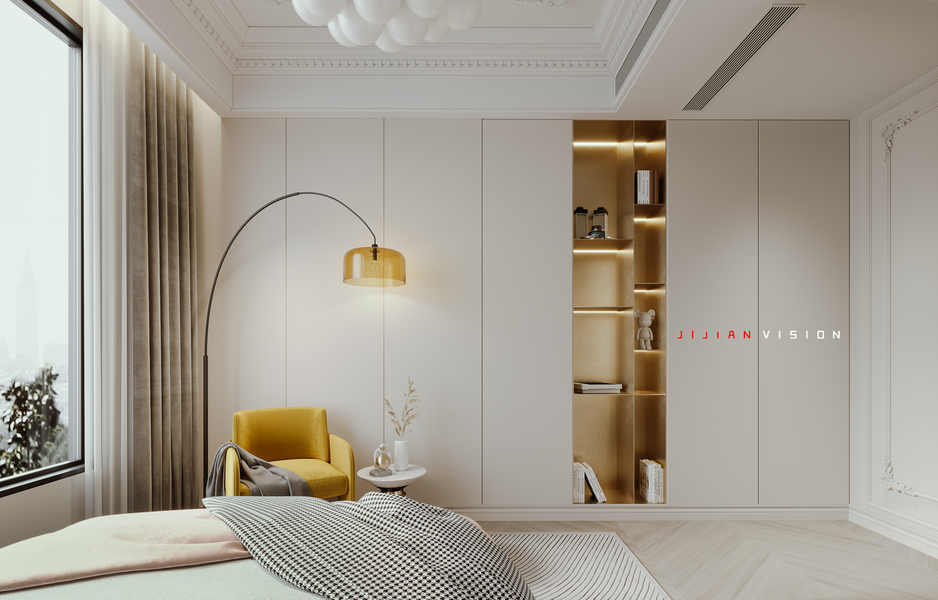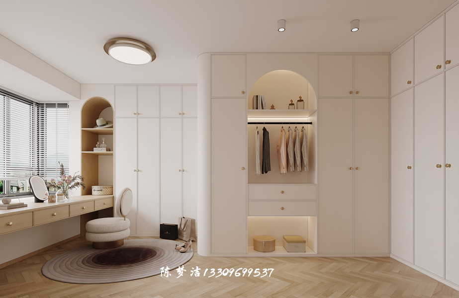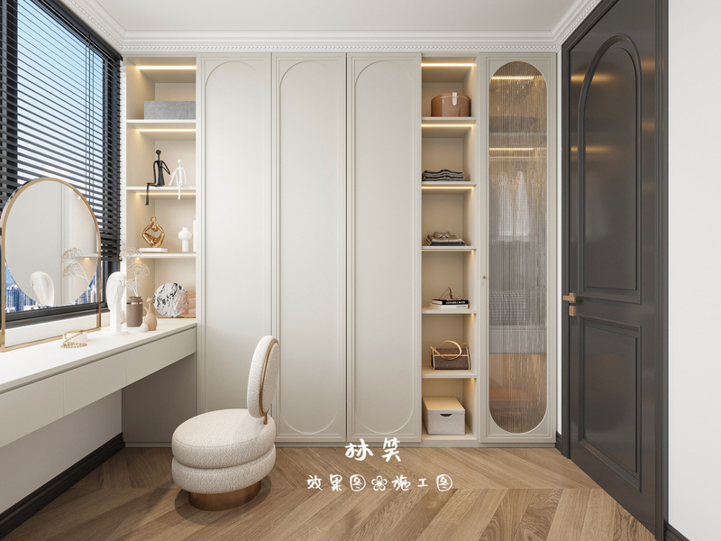 现代风格客餐厅厨房卧室—择木创建新晨效果图