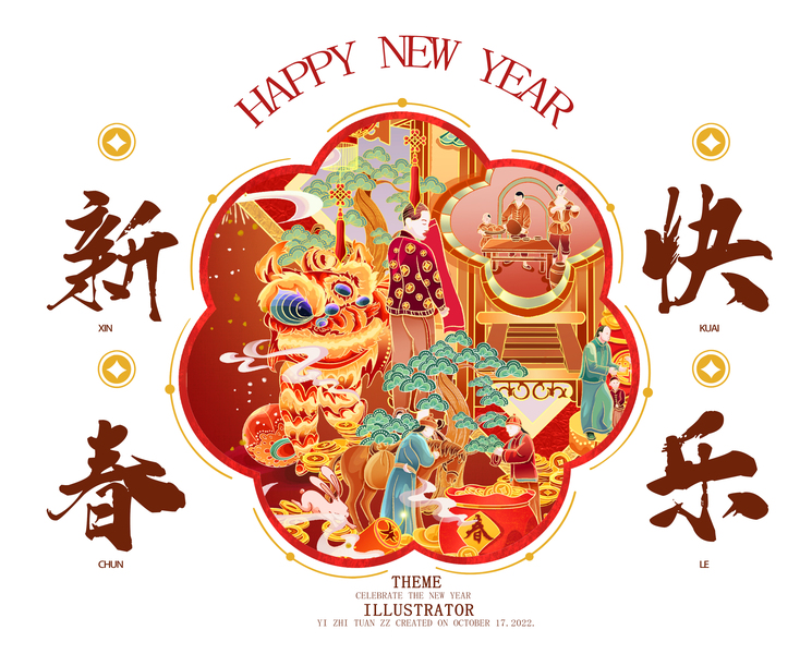 2023福贺新春 ——国潮插画舞狮篇 、对联篇