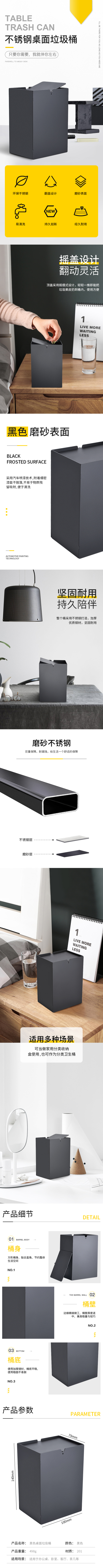 黑色不锈钢桌面垃圾桶