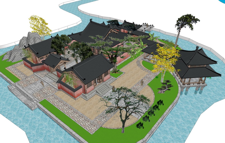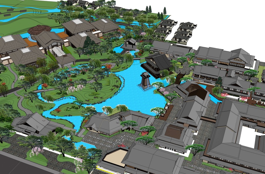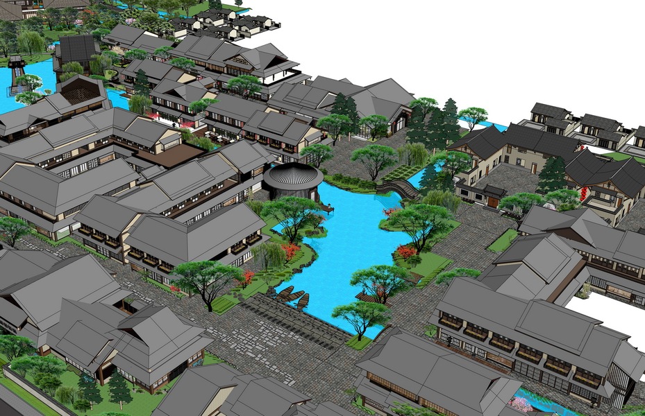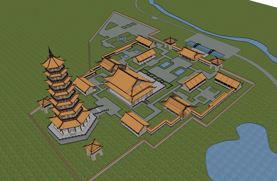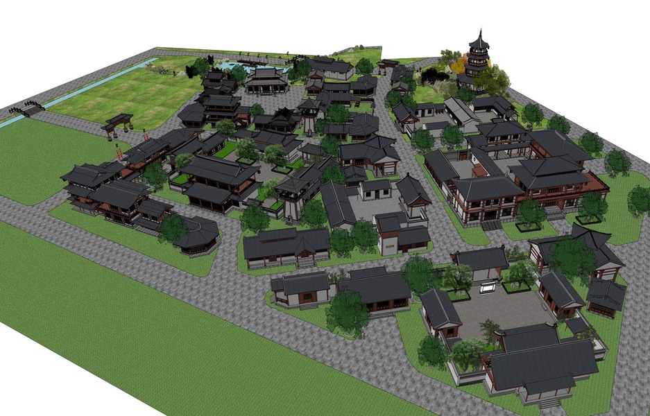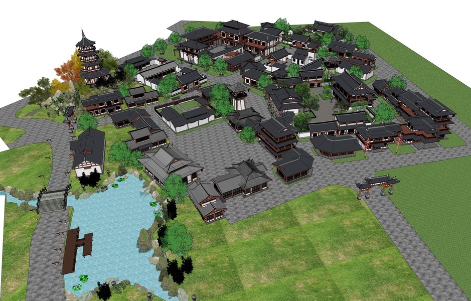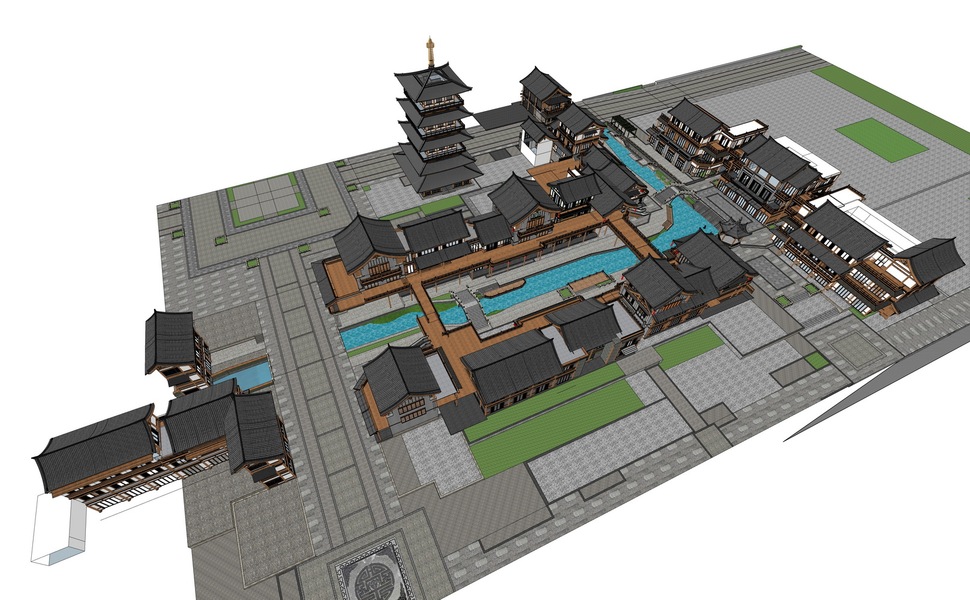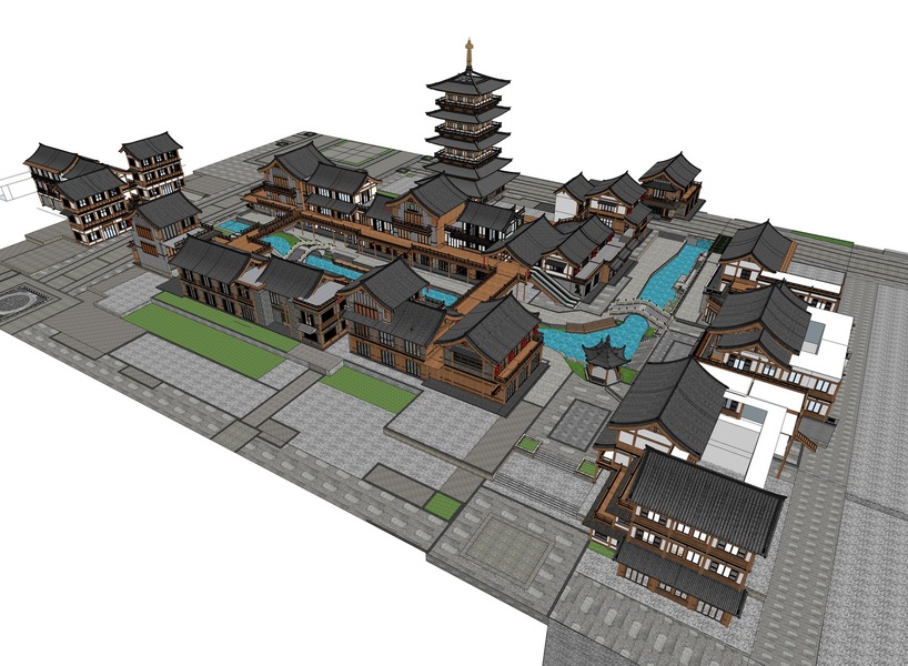 南京高淳保圣寺塔宋式商业街SU模型下载