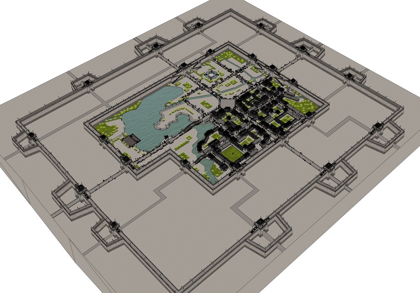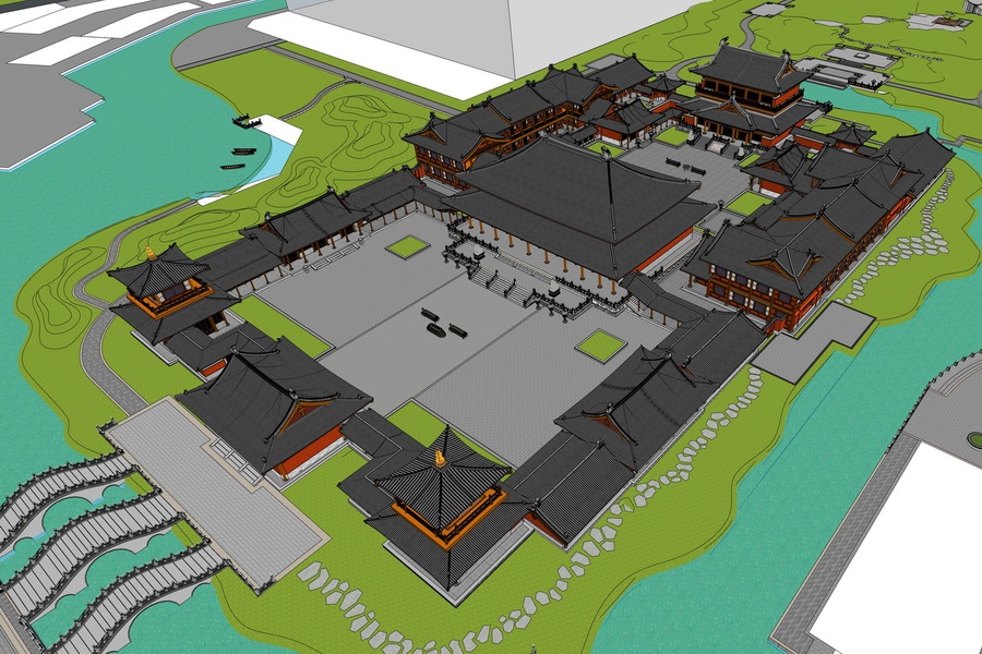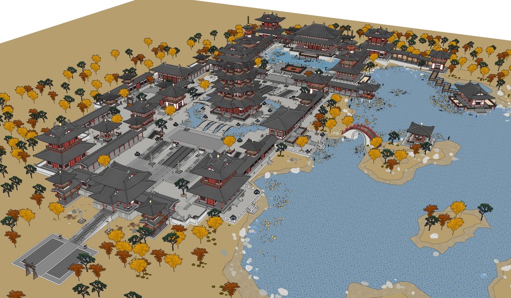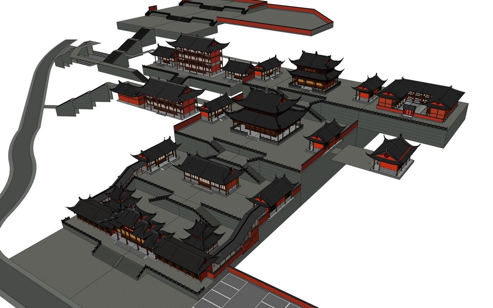 大明宫古建宫殿蓬莱殿金銮殿SU模型下载