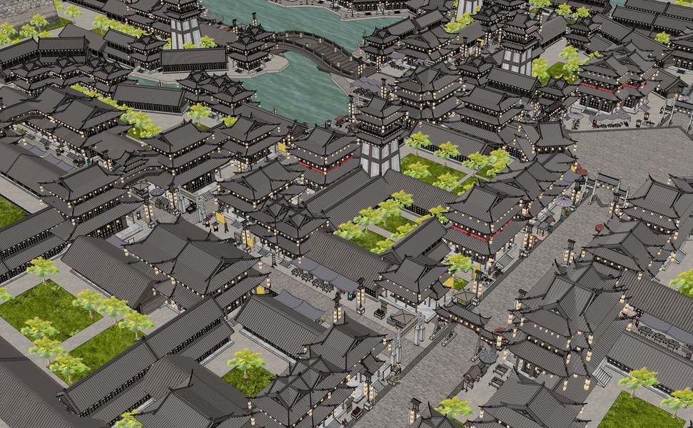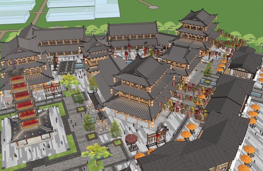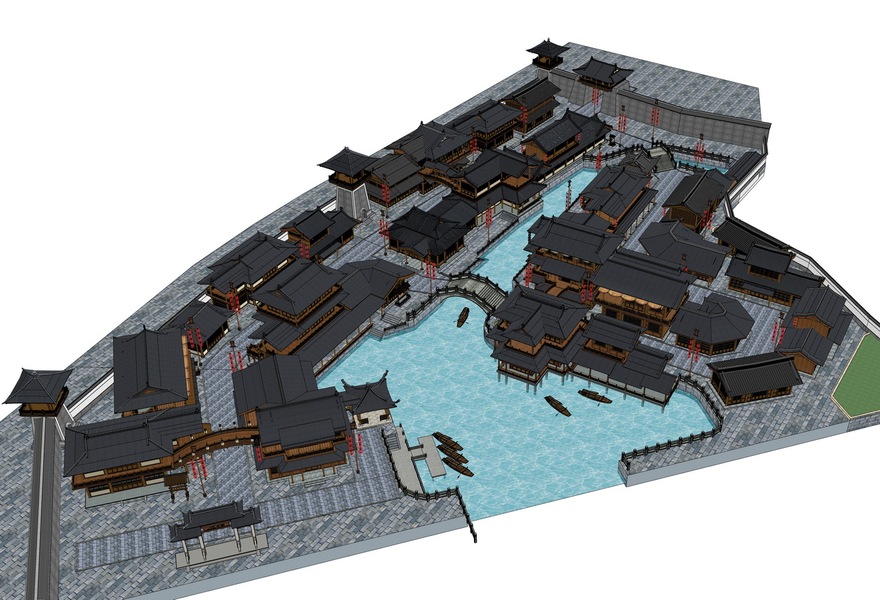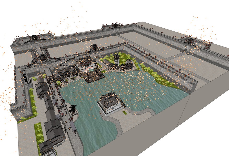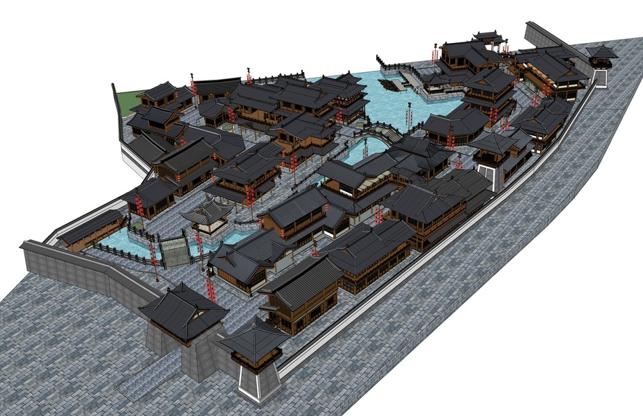 古建宋风城池城镇商业街节庆版夜SU模型下载