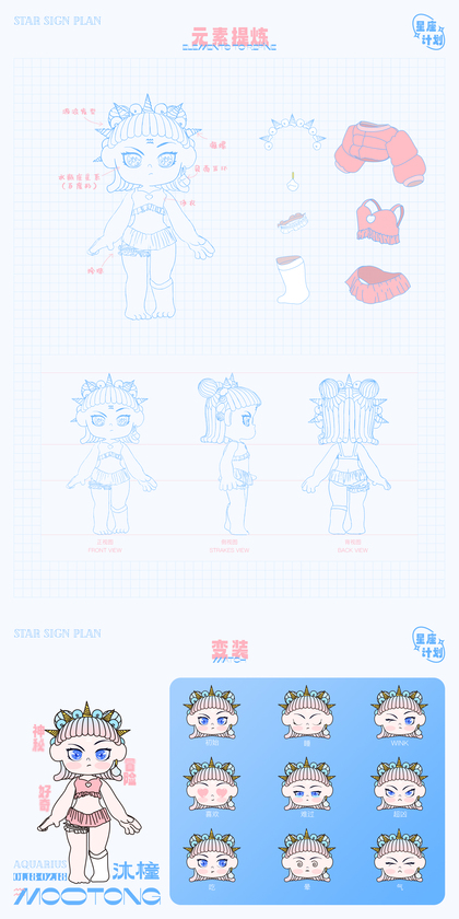 工作室承接卡通ip形象吉祥物延伸动作三视图表情设计
