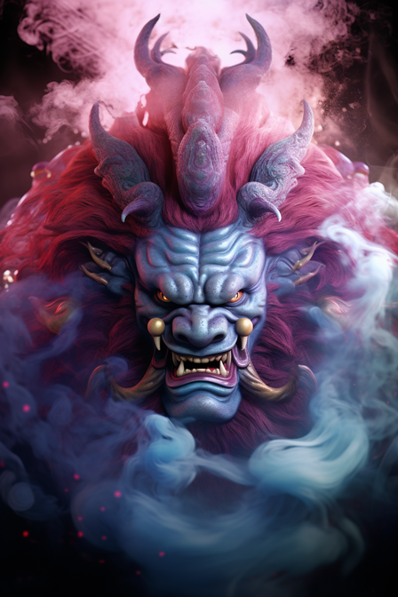 超写实动物插画风格的紫色烟雾魔鬼