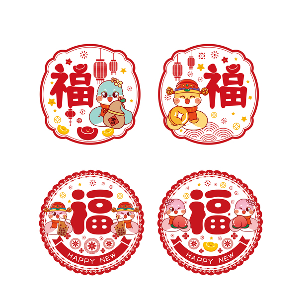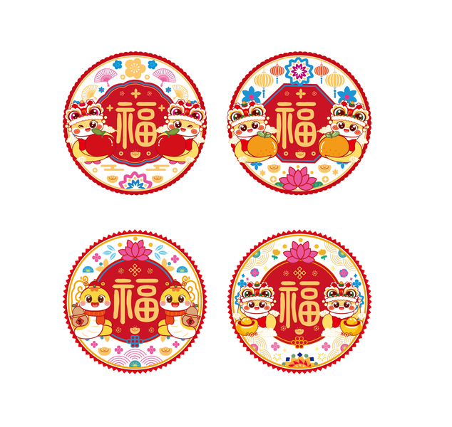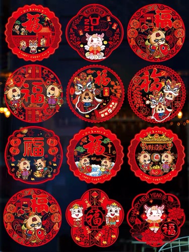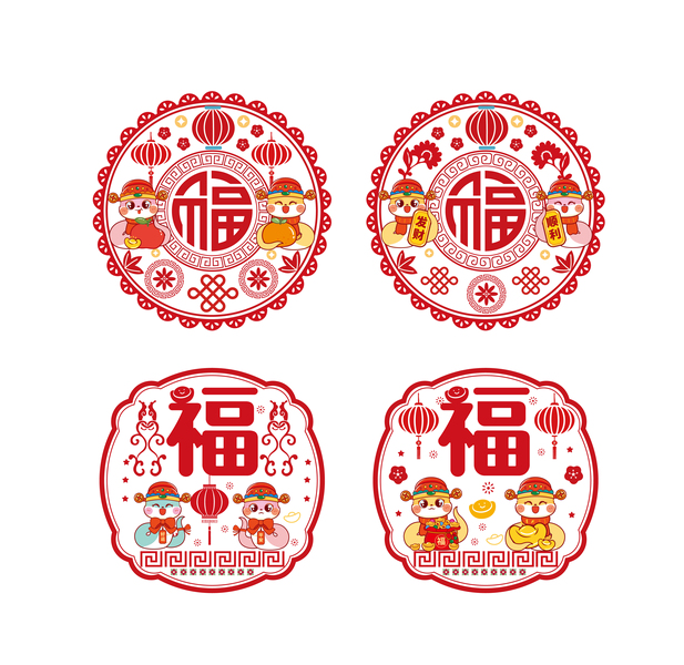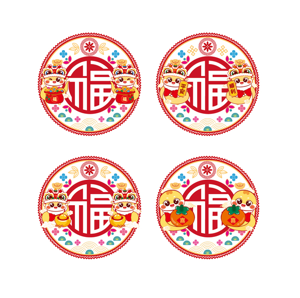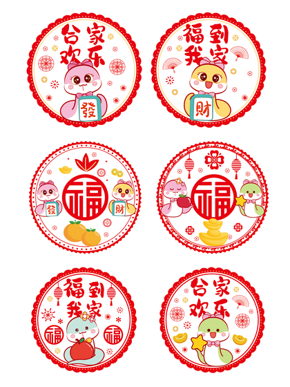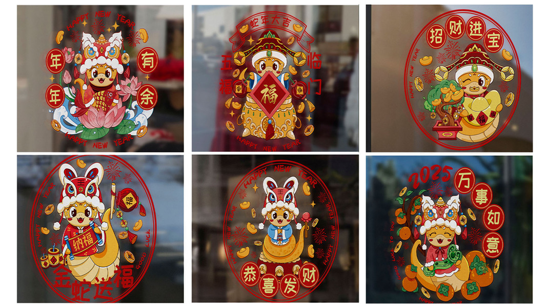 蛇年插画卡通形象窗花玻璃贴设计贴纸新年玻璃贴