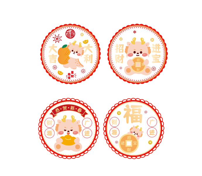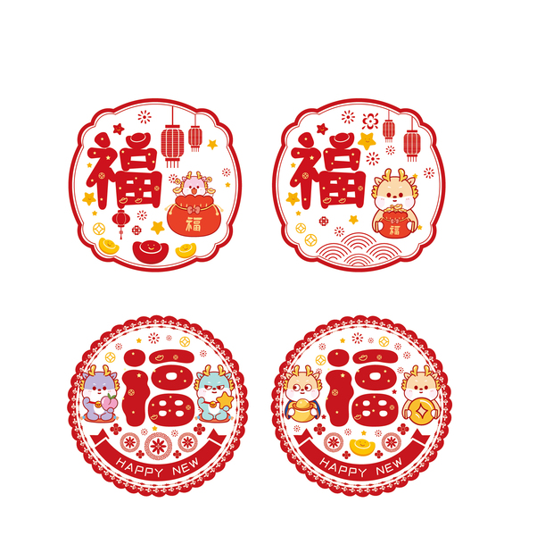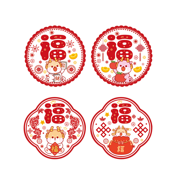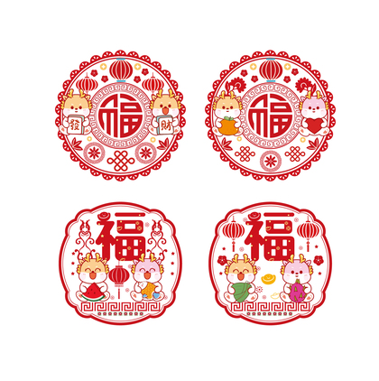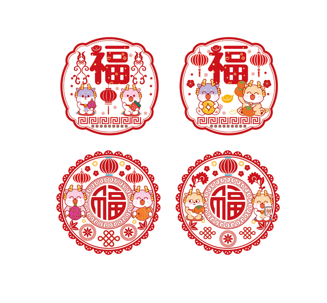 龙年窗花玻璃贴纸小飞龙卡通插画原创设计