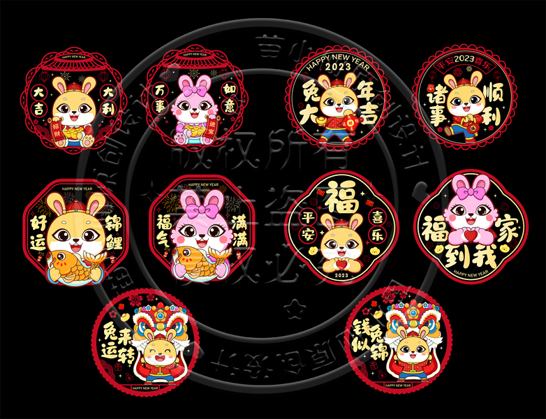 兔年窗花设计发财兔IP卡通形象插画原创可独家授权合作