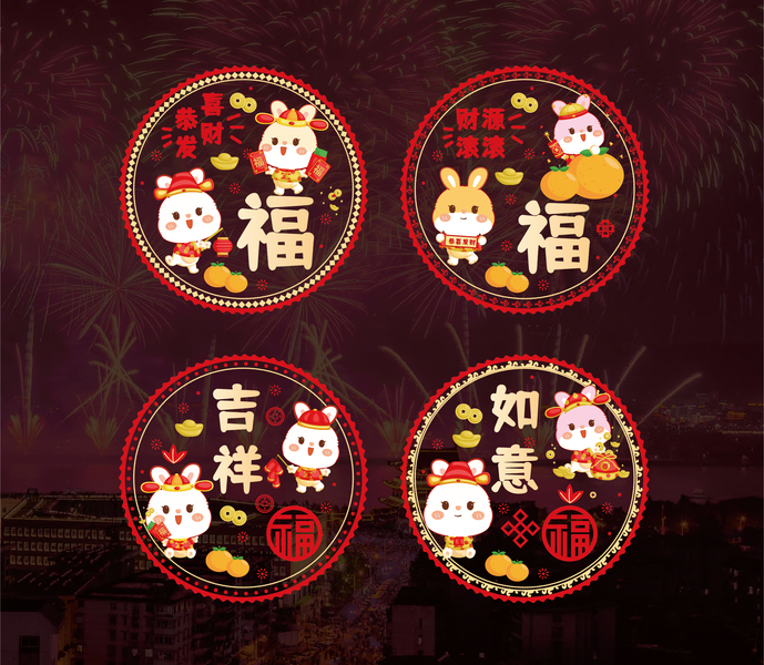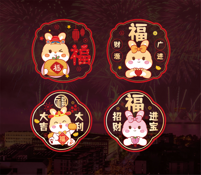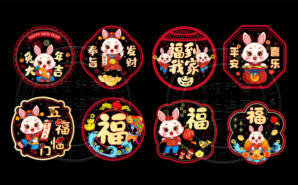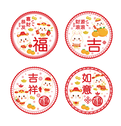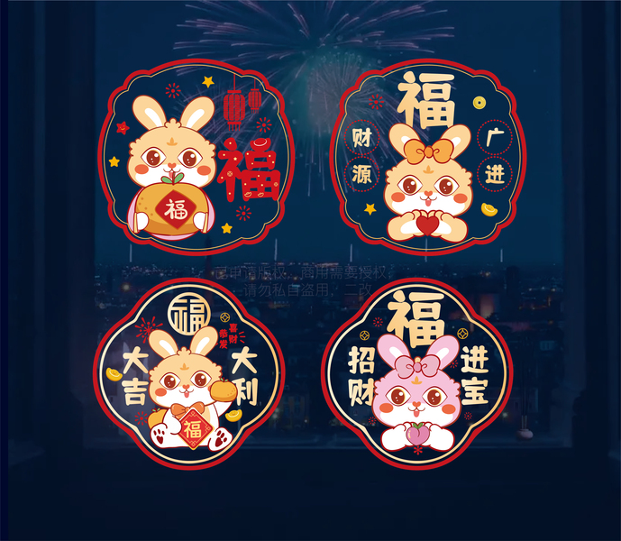 蜜糖兔生肖乐园系列IP小兔子可爱卡通插画新年春节窗花