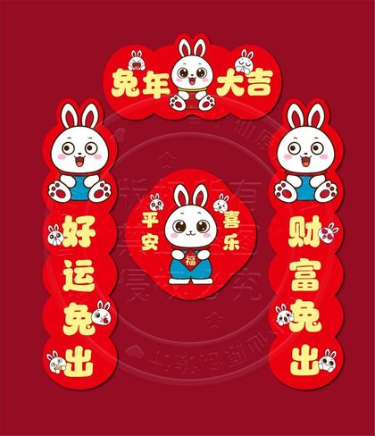 兔年对联 毛毡对联 新年对联 镂空对联 无纺布对联