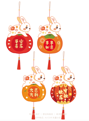 原创 中秋节灯笼插画设计卡通可爱兔子中秋节兔子月饼