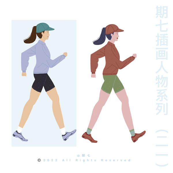 扁平风插画人物动态写生