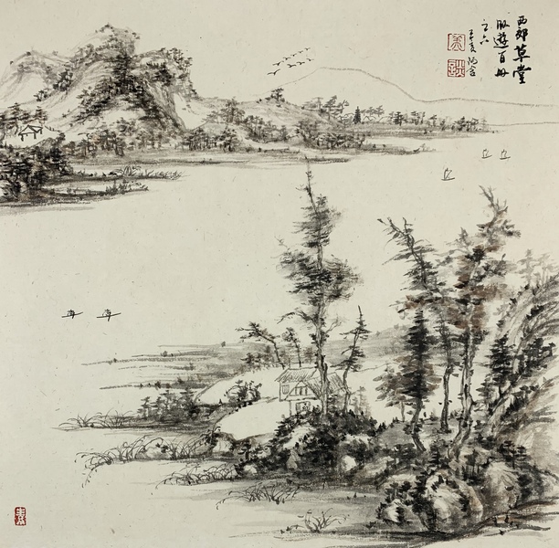 横渠散人临摹.传统水墨中国画,当代文人画,文人画,研学